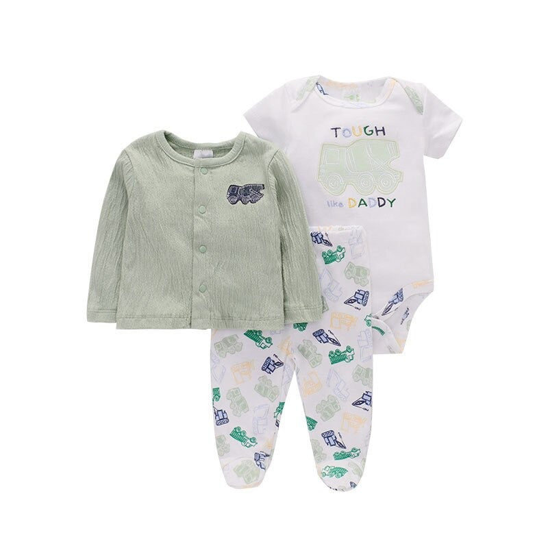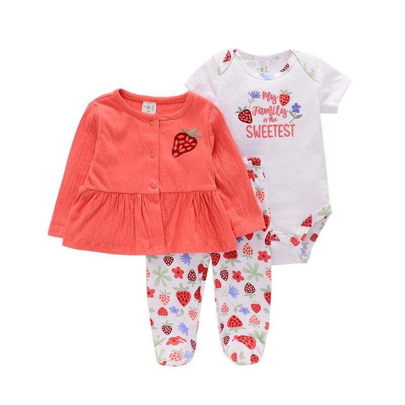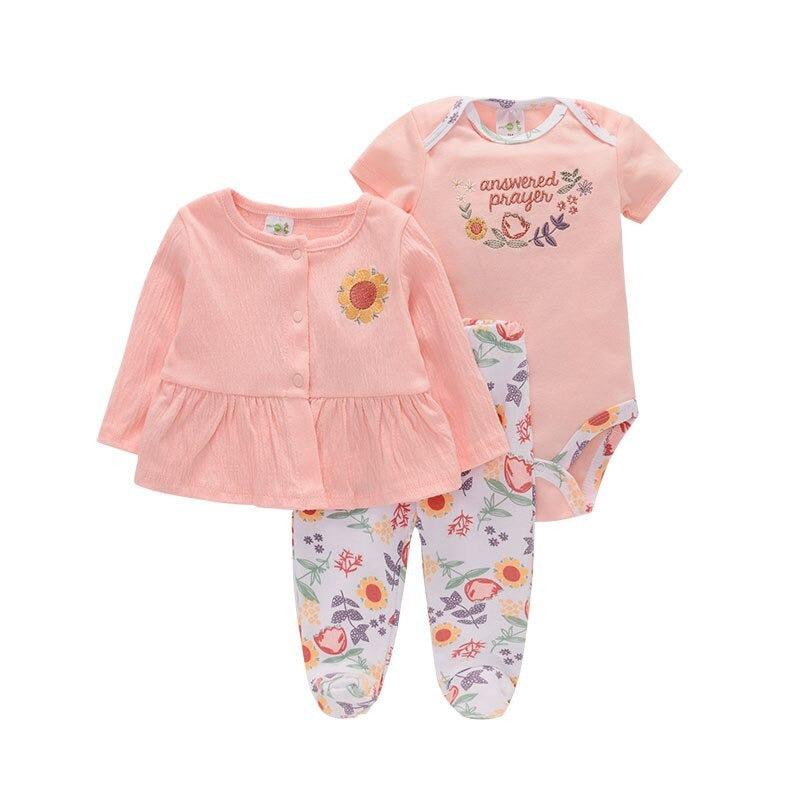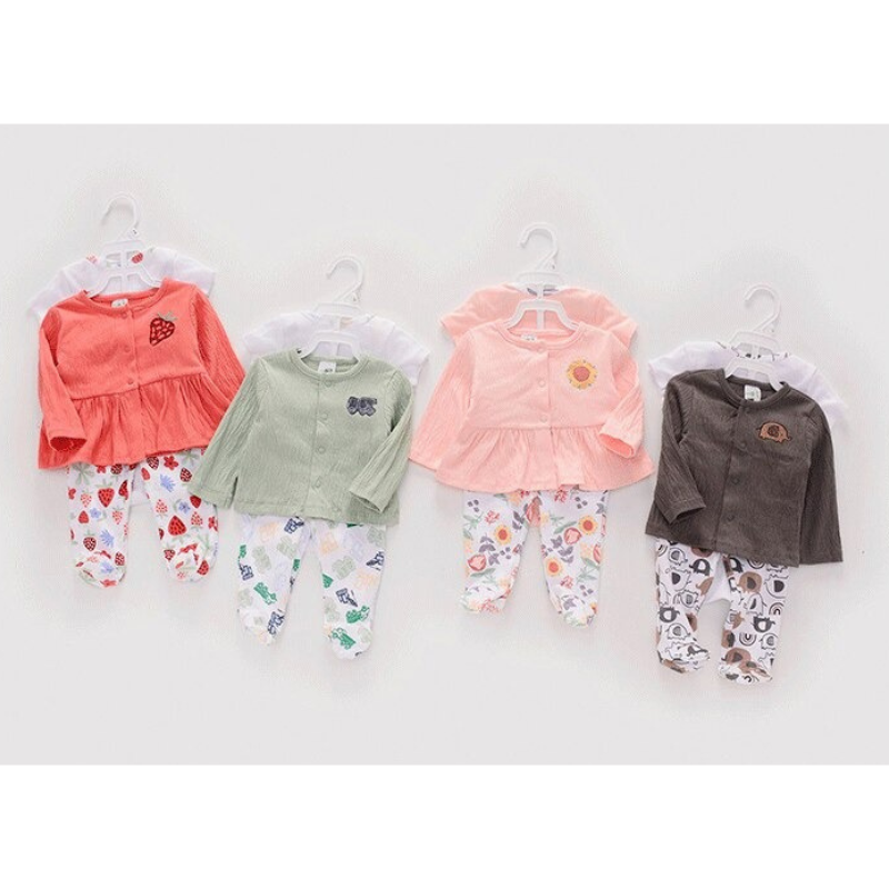 Keep your little one snug and cozy in this 3PCS Cotton Bodysuit & Pant Outfit. Crafted with ultra-soft cotton, this set is carefully designed with your baby's sensitivity in mind. The bright and stylish stripes make your bundle of joy look undeniably cute. Plus, the convenient O-neck collar and covered button closure makes it easy to take on and off. With this outfit, you can be sure that she'll be comfortable all day long while looking absolutely adorable!