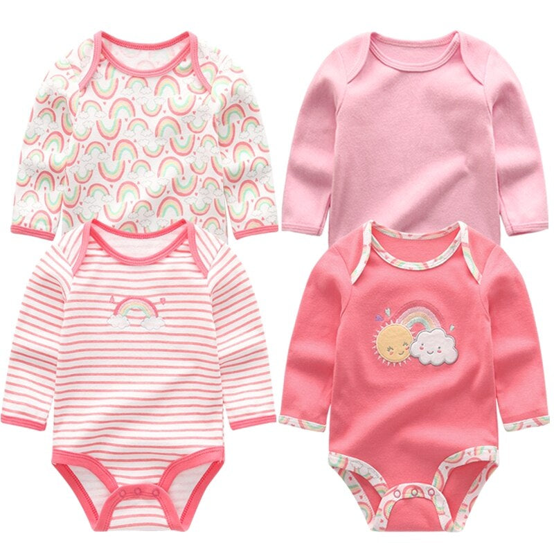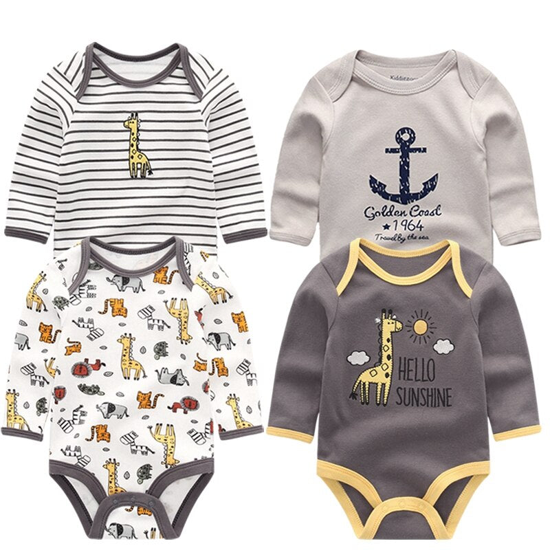 4Pcs Newborn Long-Sleeved Jumpsuits�is a perfect choice for your little one. Made from soft and breathable cotton material this set is suitable for both boys and girls. The casual style features an adorable print pattern and an O-neck collar. The long sleeves and covered chest closure make it comfortable and easy to wear. The set fits true to size and is a great choice for your baby's everyday wear.�