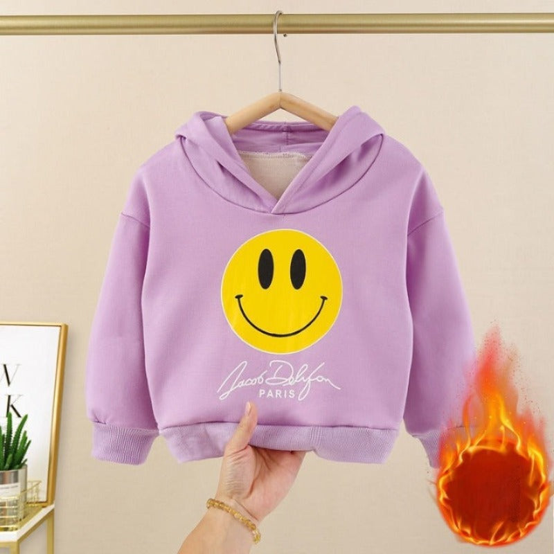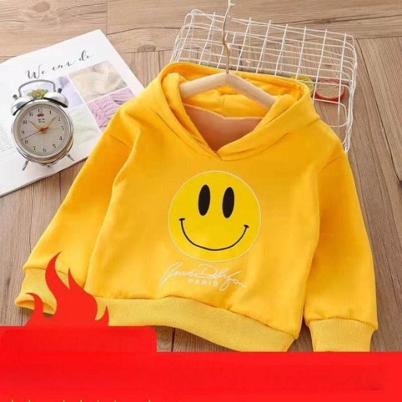 Don't mess up with your kid's dressing style and shop for this Cotton Warm Sweater For Boys & Girls. The Upper with a cute yellow smiley face sends out the message of peace and positivity and is great to be worn during the winters. The street style fashion is great for casual as well as party wear usage.