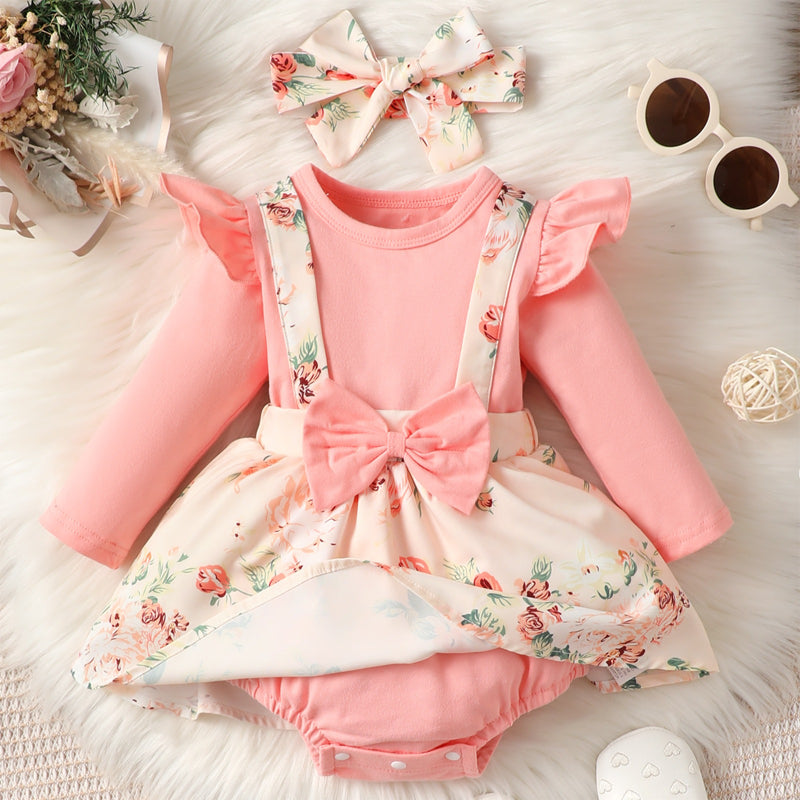 Newborn Baby Girl Short Ruffled Sleeve 3 Pcs Floral Dresses