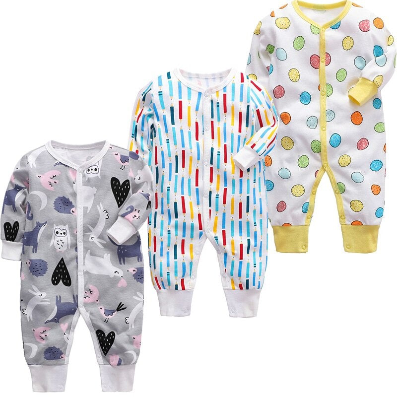The ideal outfit is this lovely, comfy Pack Of 3 Long Sleeves Unisex Baby Jumpsuit. It is made to be comfy for you to wear all day. Thanks to its printed pattern, this jumpsuit is more difficult and alluring at the same time. It is both manufactured using premium cotton and made with premium cotton. The o-neck collar of this jumpsuit makes it more enticing and flawless. Choose your favorite color from the four available options.