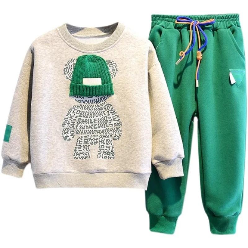 Printed Pullover Sweater And Elastic Pants Set For Kids