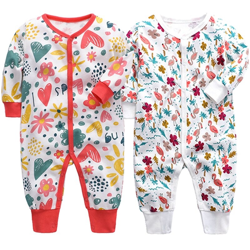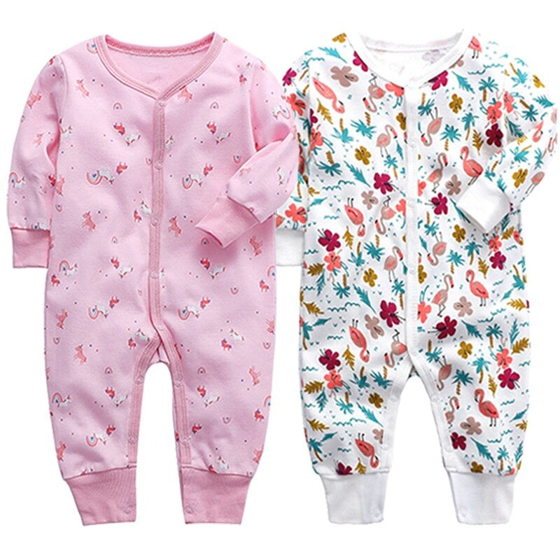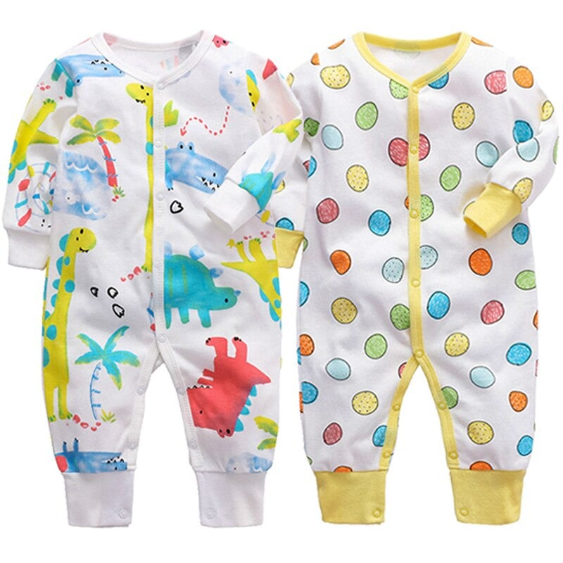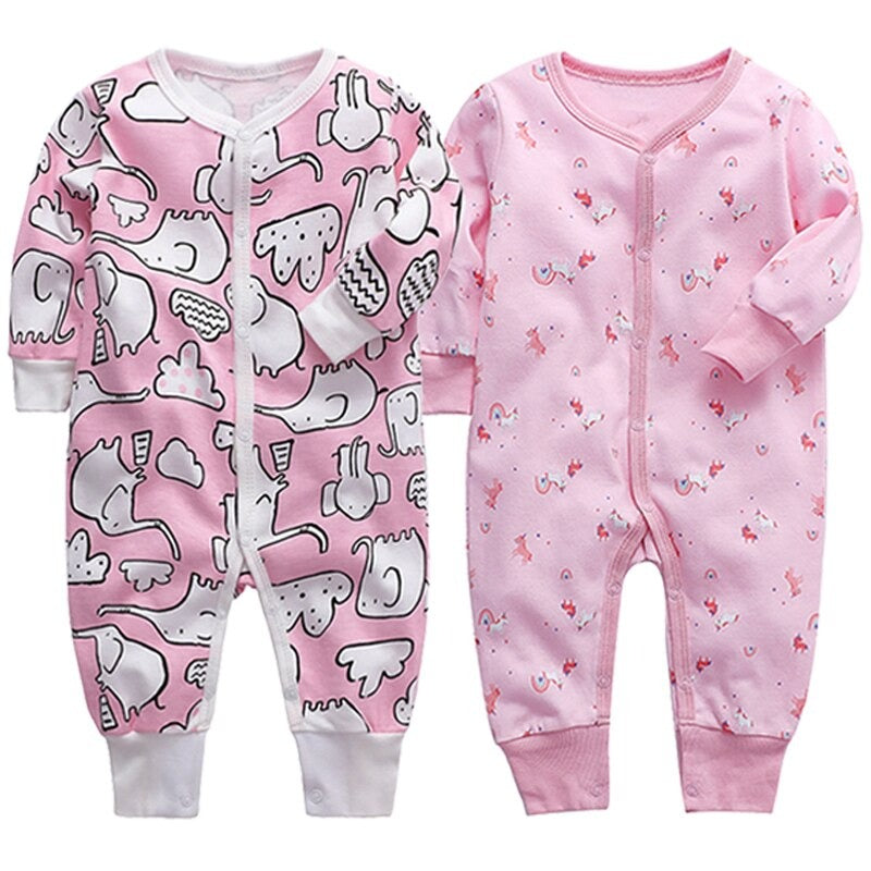 Introducing the ultimate in comfort and style for your baby, these 2 Pcs Cotton Long Sleeve Sleeper Pajamas Rompers are sure to be a hit with both you and your little one. These are made from premium quality cotton, these rompers offer breathable and soft comfort that's perfect for autumn and spring weather. The cute cartoon patterns and round neck collar add a playful touch, while the full-length sleeves and button closure ensure a secure and snug fit.