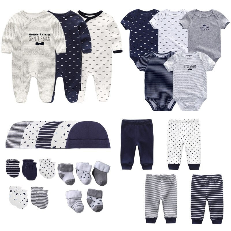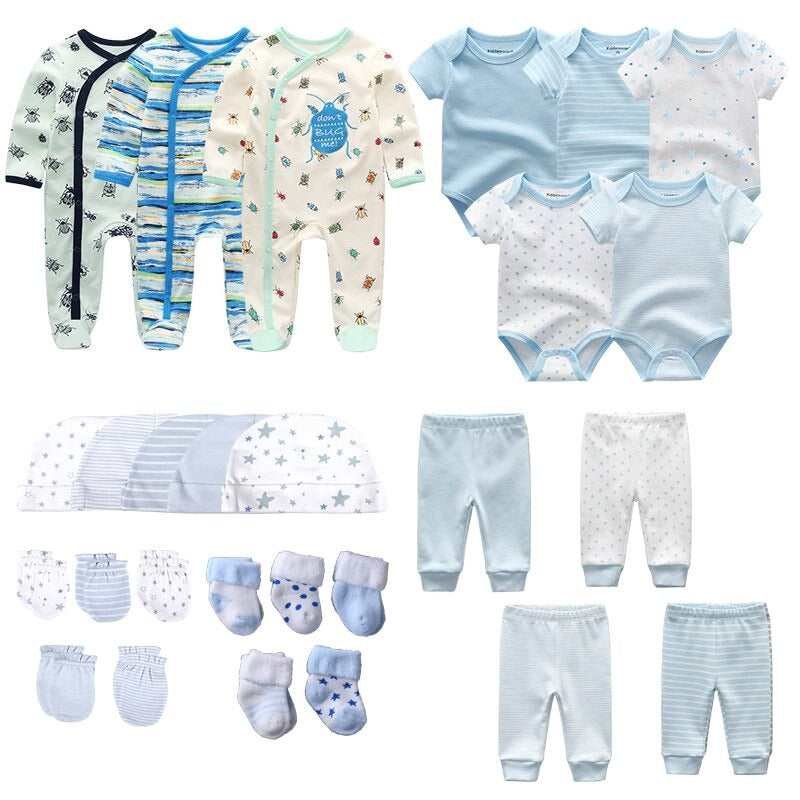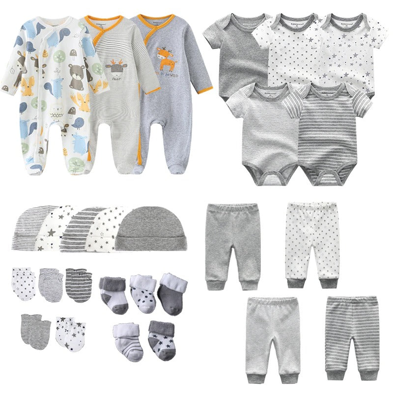 27Pcs Printed Baby Wear Jumpsuits�are perfect for newborns and infants, these jumpsuits feature a variety of prints and patterns to keep your little one looking stylish. Each piece is designed with easy snaps for quick and convenient changing, and the soft cotton material is gentle on delicate skin. With 27 pieces of jumpsuits included in this set, you'll have a variety to choose from for every occasion. Give your baby the best with our printed baby-wear jumpsuits.