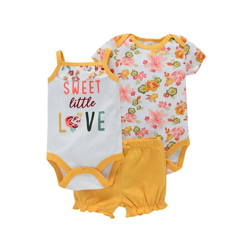 The 2Pcs Bodysuit And Pants Outfit Set is a perfect choice for your little one. Made from high-quality cotton and combed cotton, this set is comfortable and breathable, making it perfect for summer wear. The set includes a bodysuit and a pair of pants, both featuring different patterns. The vest style and short sleeves keep your baby cool and comfortable. The set is available in sizes for babies aged 0-6m and 7-12m and is suitable for both baby boys and girls. The set is easy to care for and machine washable.