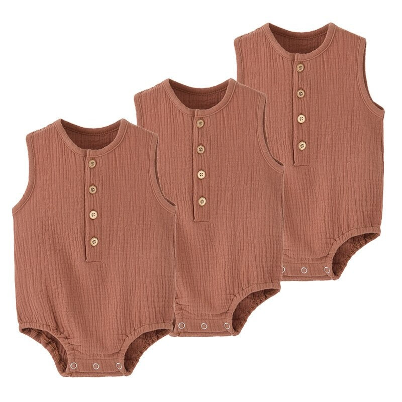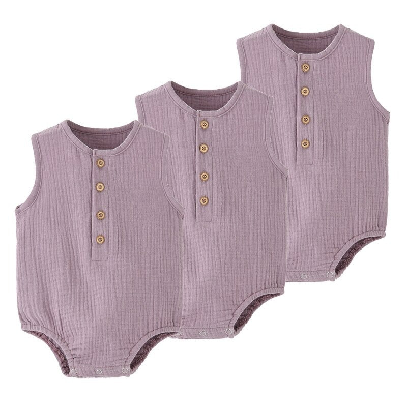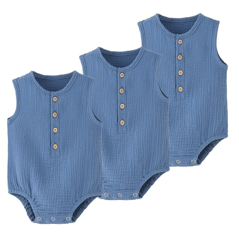 These�3 Pcs Solid Sleeveless Bodysuit For Babies is a fashionable set. It is a perfect�baby suit for your baby during the summer season. Your baby will look very adorable in this baby suit. The�baby suit�is made up of premium quality cotton that is very soft and comfortable.�The O-neck collar and button closure make it very easy to wear�and it is perfect for your baby. It is available in several colors.