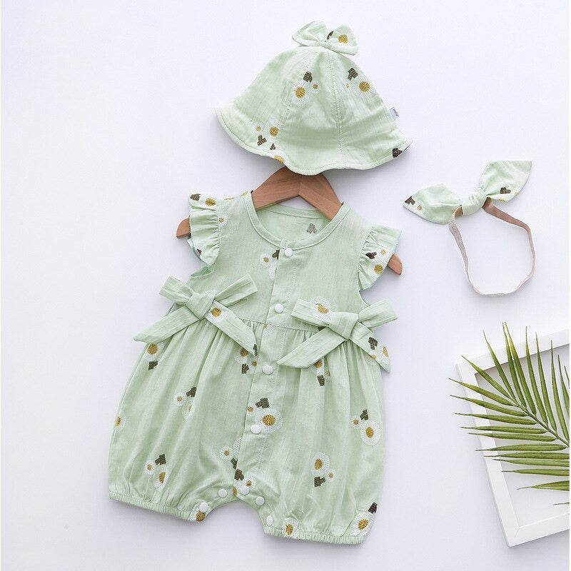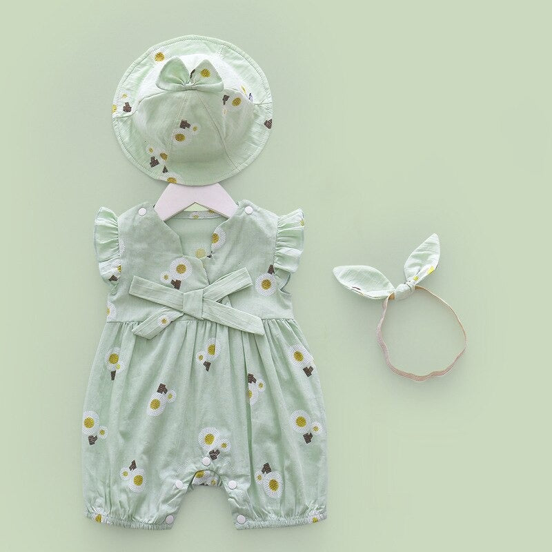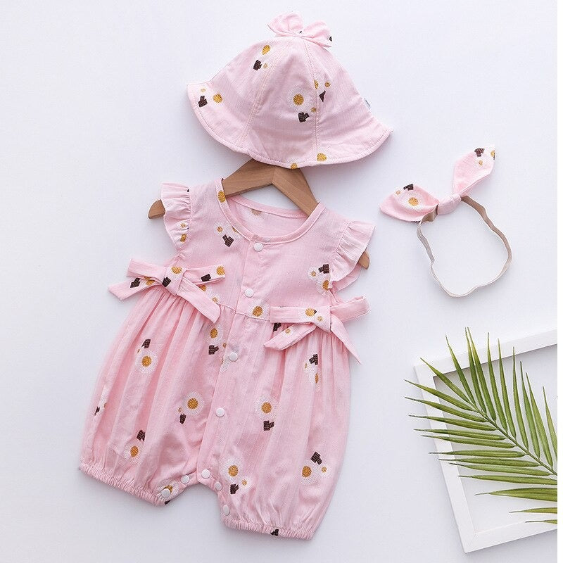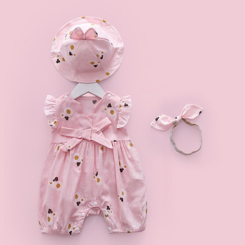 This�3 Piece Set Romper For Newborn�Girl�Babies is perfect for any special occasion! She will look so adorable in this light pink romper with white polka dots, featuring a ruffle neckline, short sleeves, and a full-length skirt. The set also includes a pink floral headband and a pair of white sandals with pink bow details. The romper is made with a soft and lightweight fabric, making it comfortable for all-day wear. With this outfit, your little girl will be the center of attention!