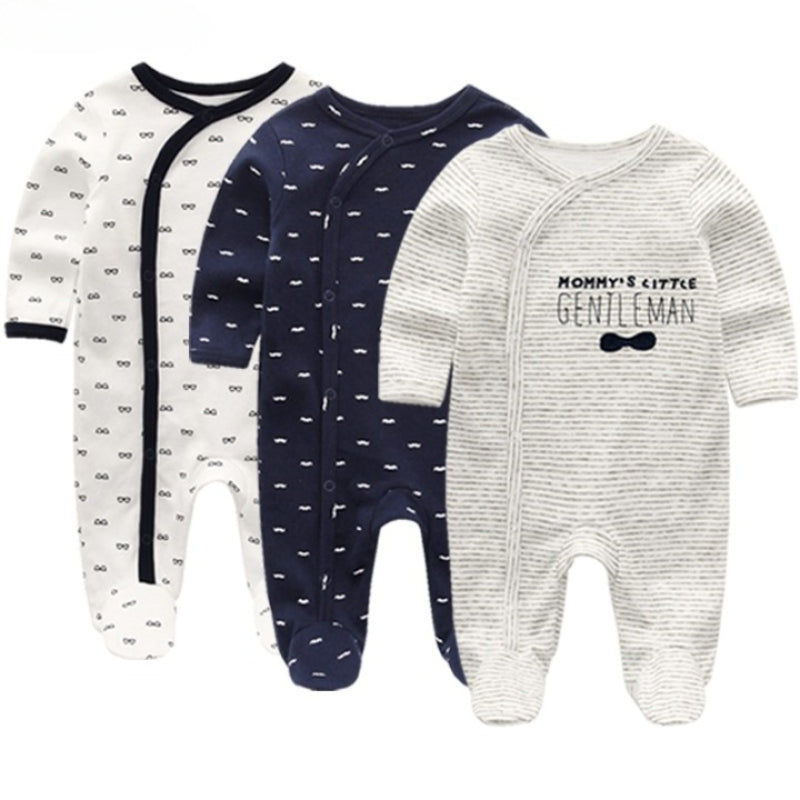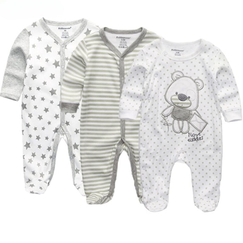 The 3 Pieces Baby Rompers Long Sleeves Jumpsuit Set is a great addition to any baby's wardrobe. Made from 100% cotton, these rompers are soft and comfortable for your little one to wear. The full sleeves and O-neck collar provide additional warmth and protection for your baby. The set comes in a variety of prints and is suitable for both baby boys and girls. The rompers are true to size and fit babies between 0-6 months and 7-12 months.