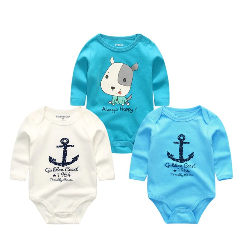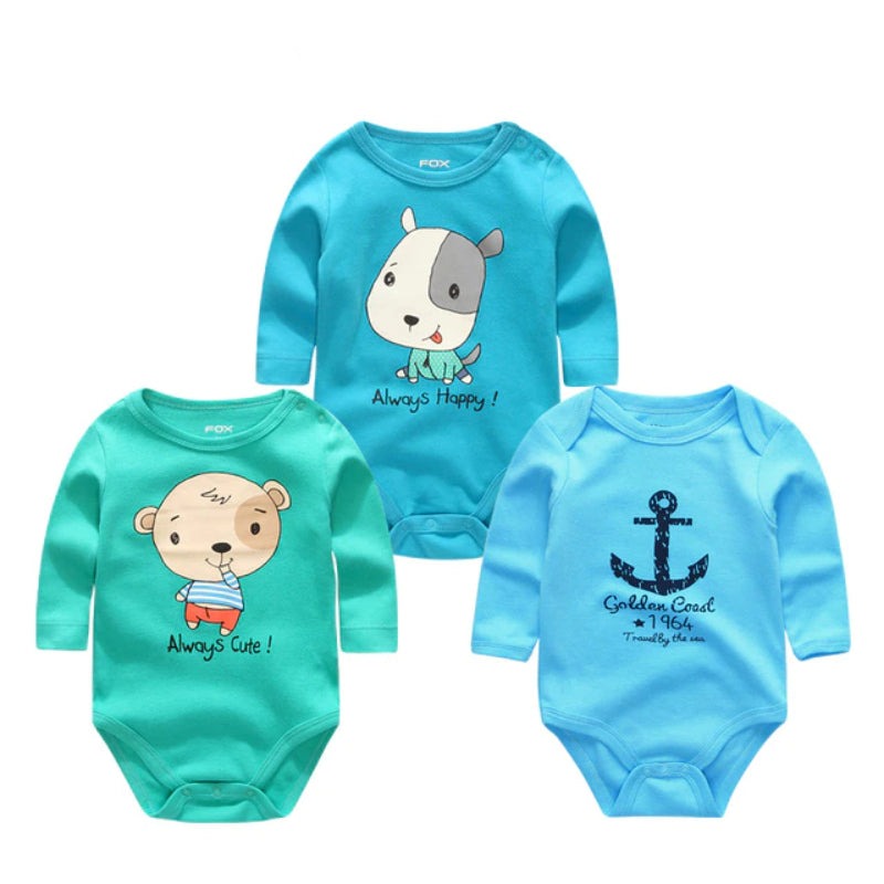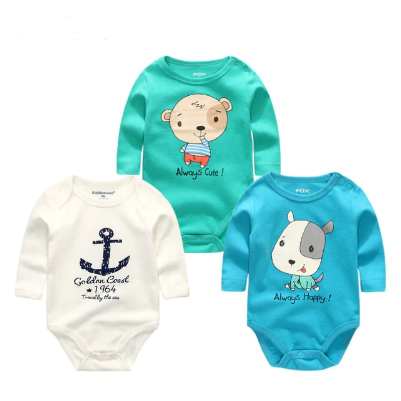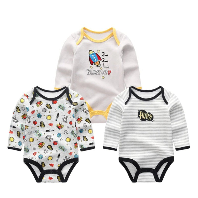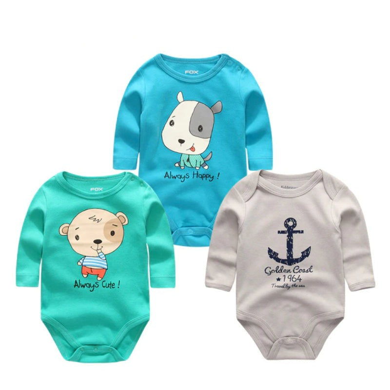 Welcome the Spring with our uniquely designed 3Pcs Long Sleeve Printed Jumpsuits for babies that create a cozy and smooth effect while wearing them. The prints are specially made for attracting the kids and their favorite cartoon characters give them joy and pleasure and it perfectly fits the babies. The O-neck collar sets an effective catchy look.