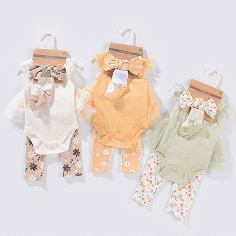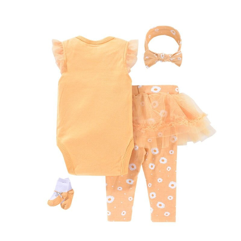 Your baby girl deserves the best of every world, so gift her this 4 Pieces Baby Girl Clothes Set. What's more? It is made of cotton, and comfortable to wear. This romper features an easy to wear, and easy to take care of your little one. The headband that comes along with this floral-designed clothes set is great for party wear and is perfect for grabbing everyone's attention.�