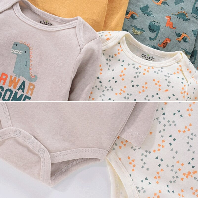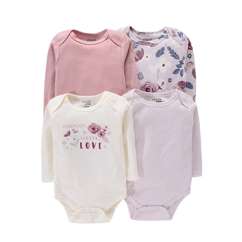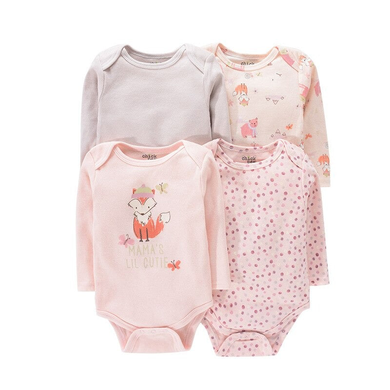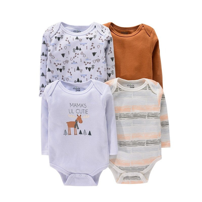 4Pc Newborn Baby Long Sleeve Jumpsuits�provide extra warmth and coverage, making them perfect for cooler weather. The snaps at the bottom make for easy diaper changes, and the playful design is sure to delight both baby and parents alike. Available in a variety of colors and sizes, this jumpsuit is a must-have for any baby's wardrobe.