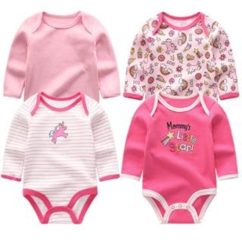 4Pcs Cartoon Print Long Sleeve Jumpsuit�features fun and colorful cartoon prints that will delight your child. Made with a soft and comfortable fabric, these jumpsuits have long sleeves to keep your child warm. These jumpsuits are perfect for layering in the colder months and can be paired with a variety of accessories to complete the look. Don't miss out on this set!