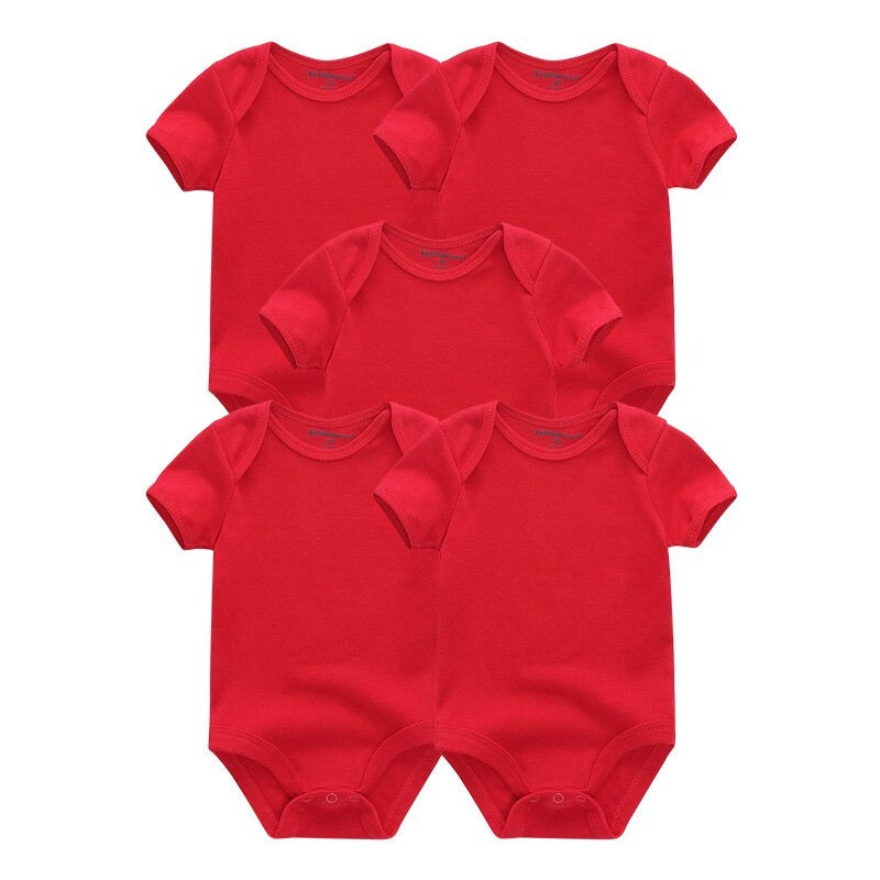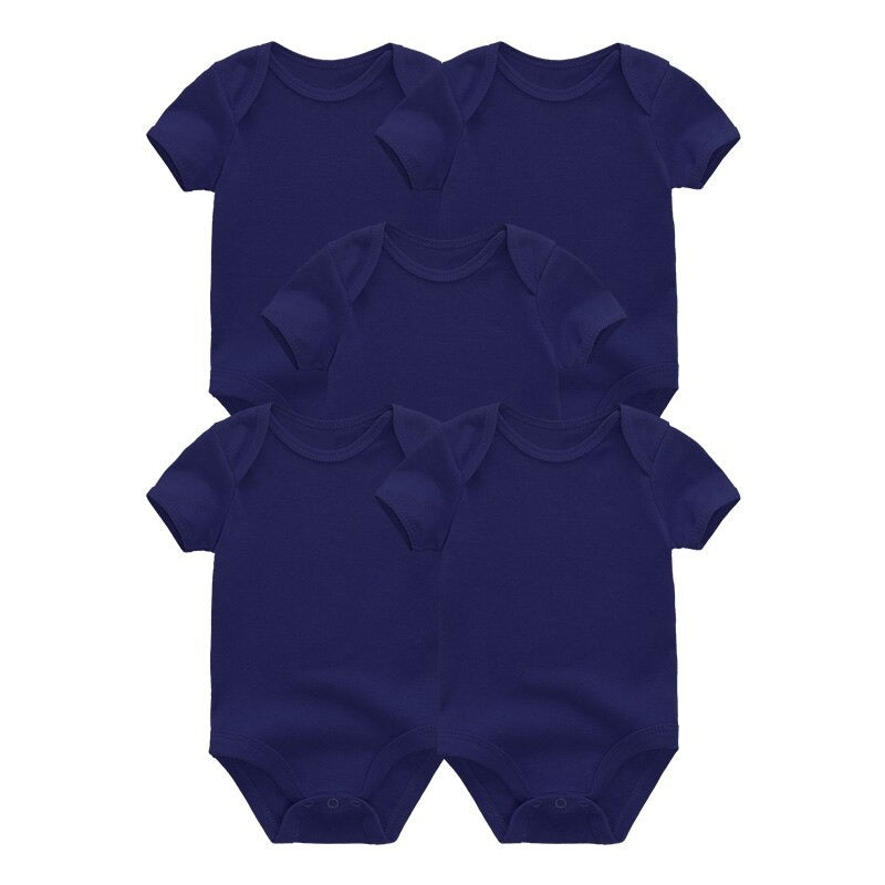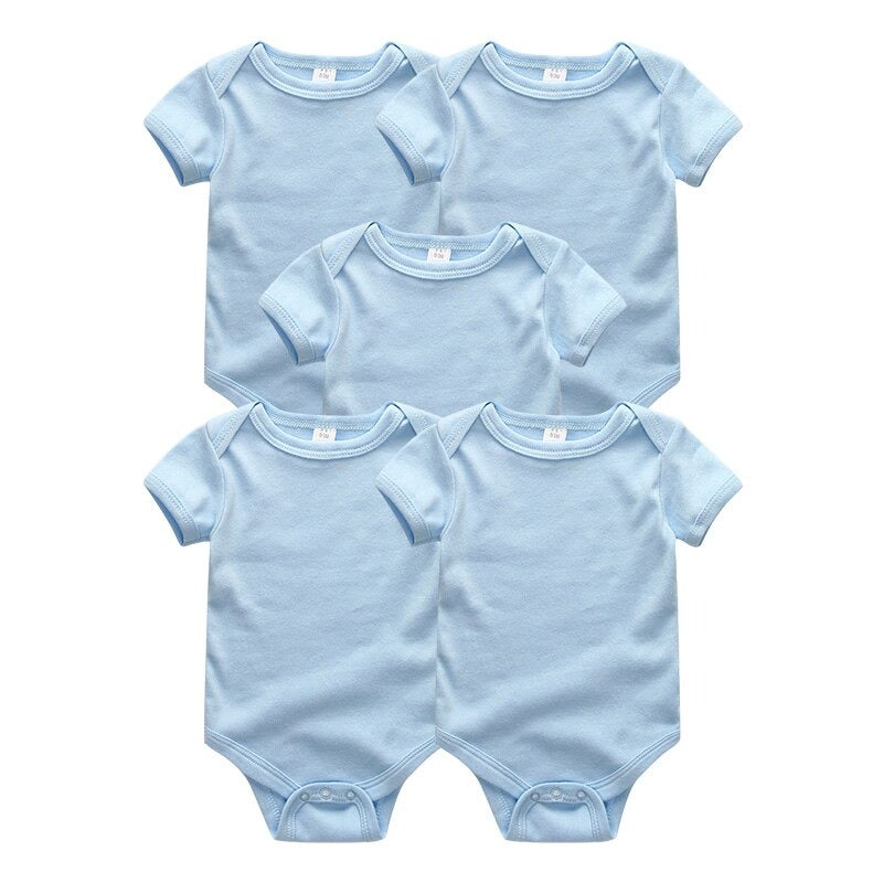 This summer, keep your little one cool and comfortable with this 5 Pcs Unisex Baby Cotton Short Sleeved Bodysuits. This outfit is ideal for hot weather because it is made of 100% soft cotton. Because of the solid color pattern, it is appropriate for both newborn boys and girls. The O-neck collar and snap closure make dressing your baby simple, while the short sleeves keep them warm.�