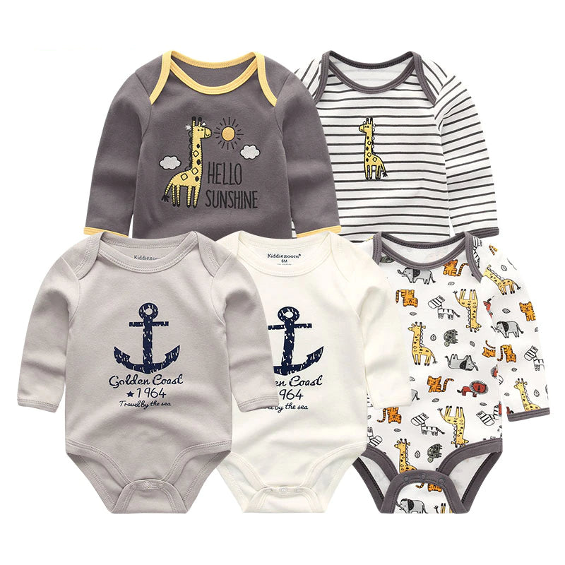 The 5 Pieces Printed Baby Clothes Set is made from soft and breathable cotton and features a covered button closure for easy dressing. The prints on the clothes are very adorable, making them perfect for everyday wear or special occasions. Overall, this set is a great value for parents looking for durable and comfortable baby clothes that are both functional and stylish.