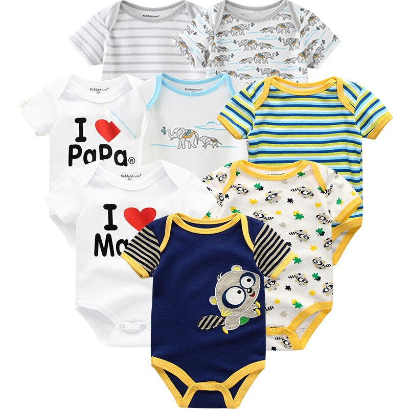 Surprise your little one with this�8 Piece Of Casual Cotton Infant Jumpsuits Set on their special day. Made from pure cotton, this soft and comfy set is perfect for your baby to romp around in. With a variety of stylish and colorful designs, it's sure to put a smile on their face. From the moment they open the gift until they wear it all away, this sweet jumpsuit set will keep your baby happy and looking stylish.