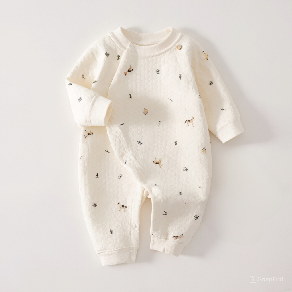 Pair this Baby Long Sleeve Romper with socks or soft shoes for outings. It can also be layered with a jacket during cooler weather. The neutral base and prints allow it to match easily with accessories, making it versatile across different occasions.
