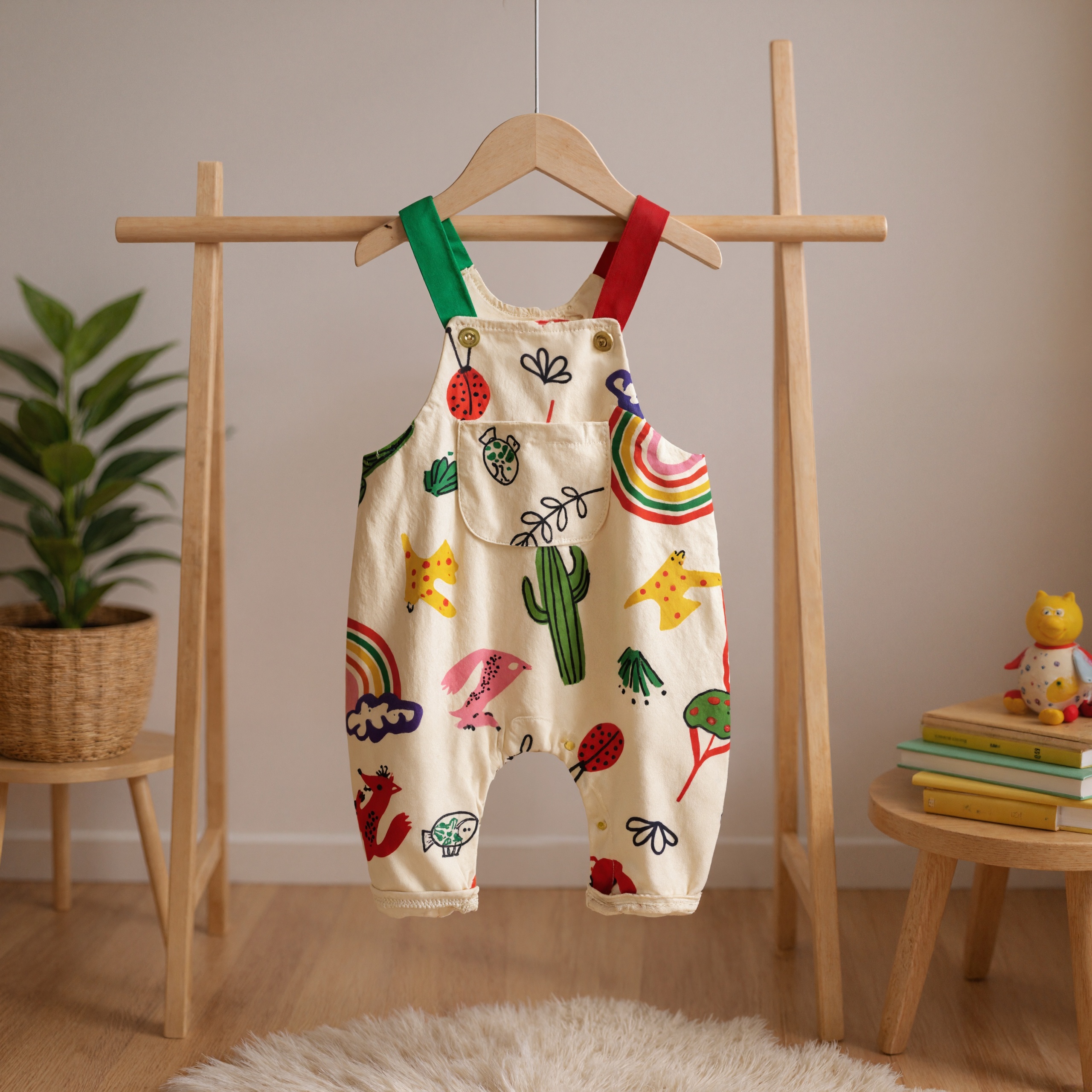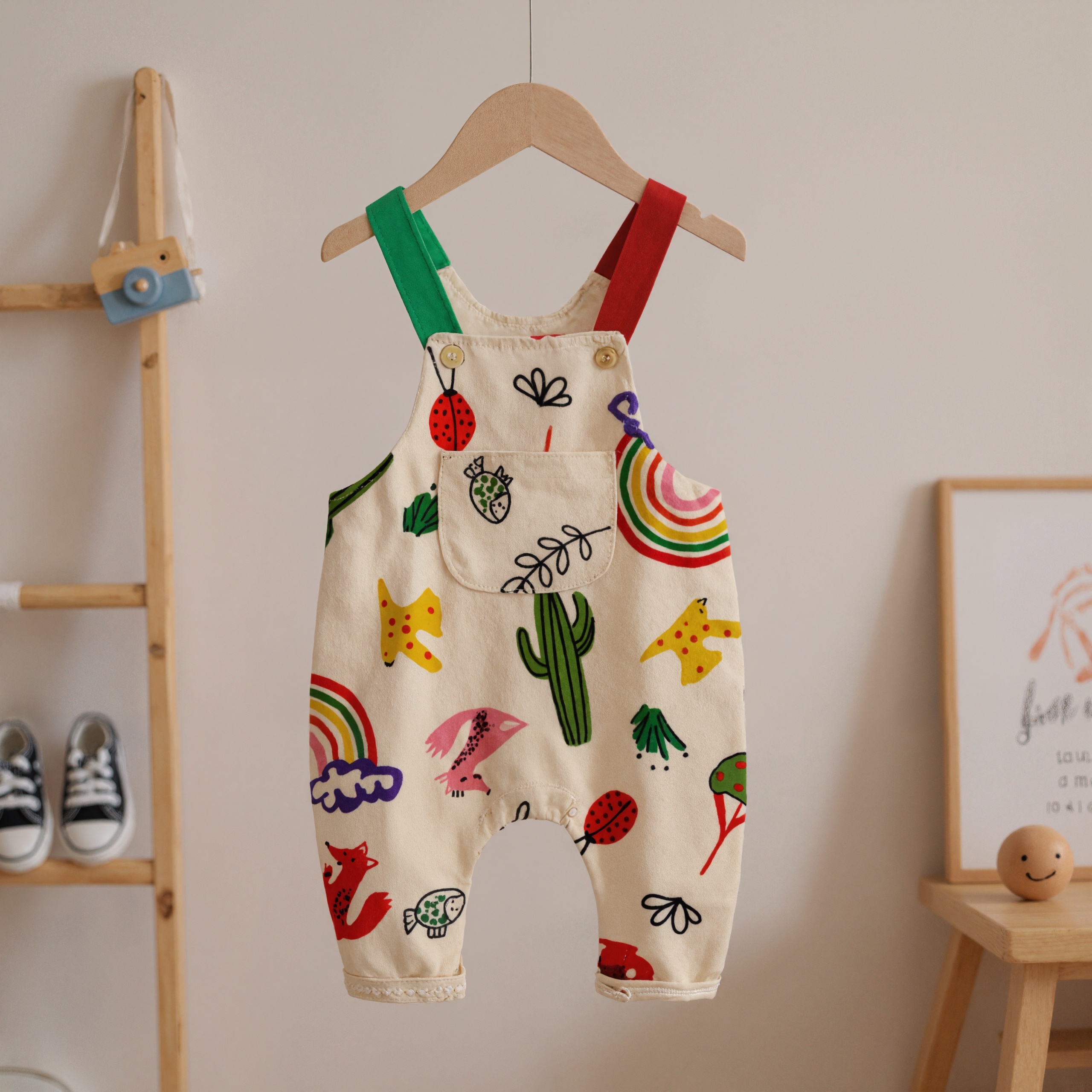Made from soft cotton with adjustable straps, it provides comfort and flexibility. Designed with vibrant prints and neutral appeal, it suits multiple occasions from daily routines to outings. Available in sizes from 6M to 6T, this overall grows with your child, making it a practical and stylish addition to any wardrobe.