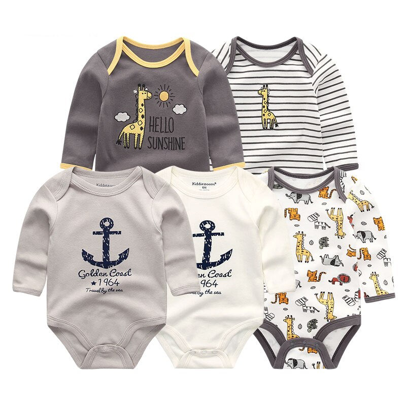 This Cartoon Print Newborn Boy's Girls Clothes Set Bodysuit is made of 100% soft and comfortable cotton. It is perfect for babies aged between 0-6 months and 7-12 months and can be worn during the spring and autumn seasons. The fashion-forward design features an O-neck collar, full sleeves, and a regular sleeve style. The bodysuit features covered button closures for easy dressing and is perfect for any baby and is an excellent addition to their wardrobe.