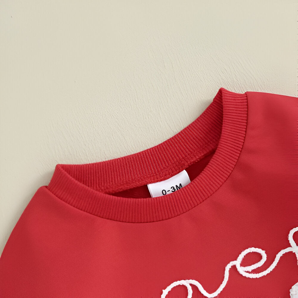 - Design: The bodysuit displays the words in bold, textured red and white letters on the front.