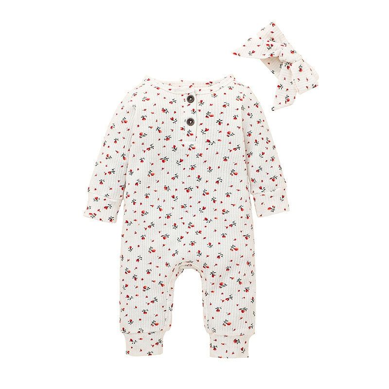 Explore your children's new style with these�Girl Baby's Floral Print Romper With Headband.�These outfits are quite fashionable and super-soft, the novelty style of these outfits makes them more alluring. The polka-dot design of these outfits makes them more demanding. These are elegantly made with superior cotton fabric and the o-neck collar adds extra comfort to it.
