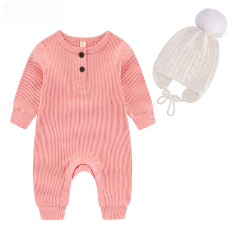 The perfect addition to your little one's wardrobe, this Infant Boy Girl Jumpsuit Knitted Romper is sure to keep your baby warm and cozy. Crafted from a premium cotton blend, this romper is ideal for cooler weather. Features include a solid design type with a closure type of covered button, an O-neck collar, and full sleeve length for extra comfort. Whether for everyday wear or special occasions, this jumpsuit is sure to be an essential piece in any baby's closet.