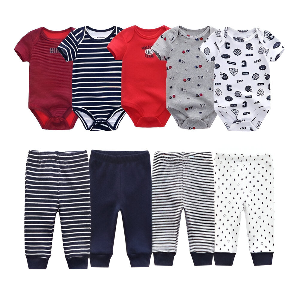 This adorable�Multicolor Fall Bodysuits And Long Cotton Pant Set For Toddlers features a multicolor bodysuit and a matching pair of long cotton pants. Made of soft and breathable 100% cotton, it is perfect for the fall season. The bodysuit has snaps at the bottom for easy diaper changes. The pants have an elastic waistband for a snug and comfortable fit.�