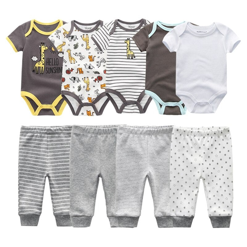 Multicolor Fall Bodysuits and Long Cotton Pants for Toddlers are made with 100% soft and breathable cotton, these adorable outfits are perfect for the spring and autumn seasons.�The set includes a bodysuit and a pair of long cotton pants, making it easy to dress your baby in complete and cozy attire. These outfits fit true to size and are perfect for both boys and girls. The broadcloth fabric is gentle on delicate skin and the vest outerwear style adds an extra layer of warmth.