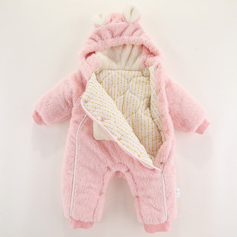 All eyes will be on your little bundle of joy in this Newborn Baby Boy And�Girl Winter Hooded Romper. Crafted with super soft and lightweight cotton & polyester fabric, these outfits will keep your baby comfortable all day long. The classic hooded collar and cartoon pattern add a touch of fun while the long sleeve length ensures they stay warm. Perfect for winter days, this romper will be a must-have in any new parent's wardrobe. Whether it's for special occasions or just an everyday breeze, your baby will look adorable.