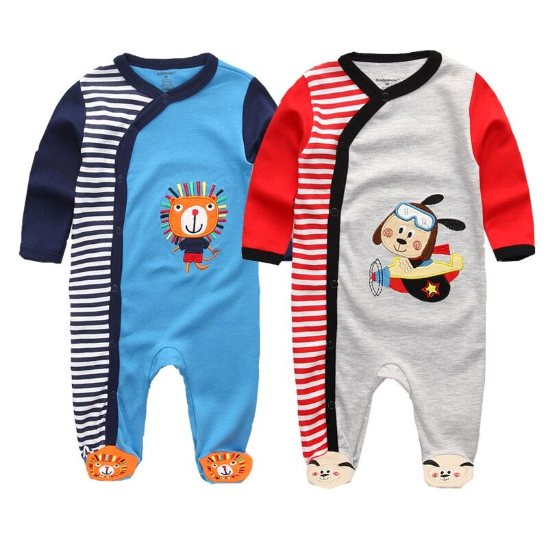 This�Printed 2 Pcs Long Sleeve Sleeper Romper For Babies is a unisex romper. This romper is soft and breathable so your baby�can sleep peacefully. The material used in this romper is cotton which is comfortable and durable. The bright cartoon print adds a fun touch to the romper. Your baby can wear this beautiful romper in any season. It has a round neck and button closure.
