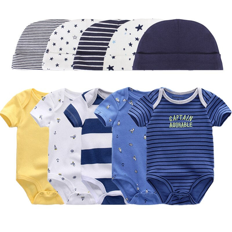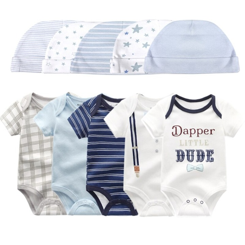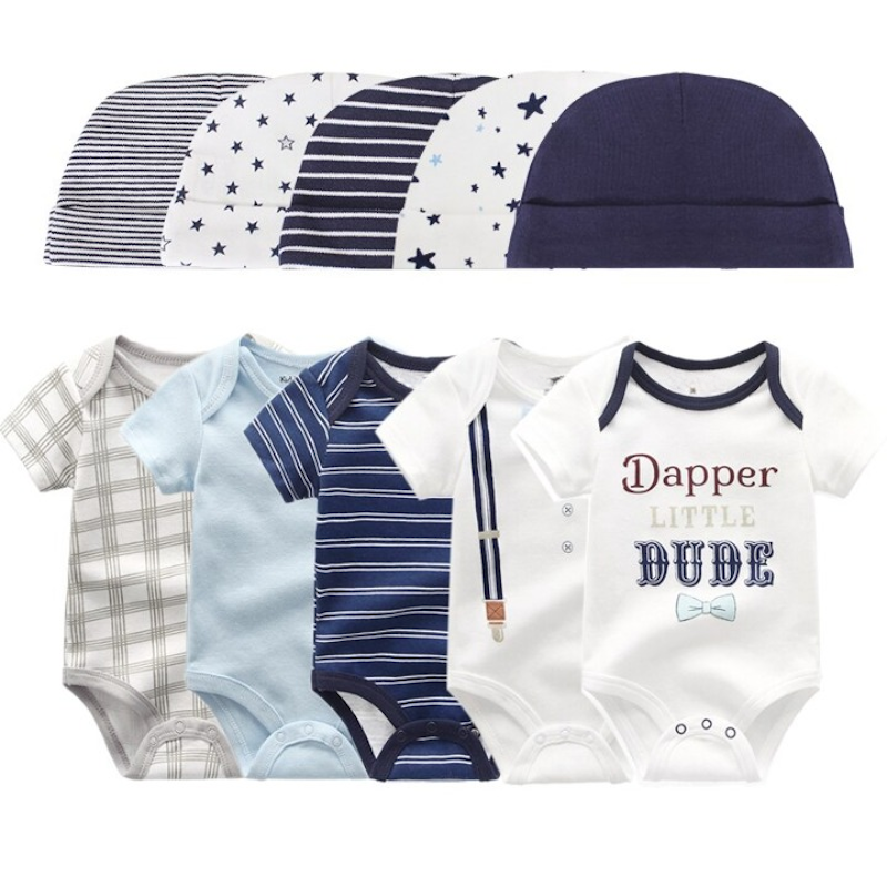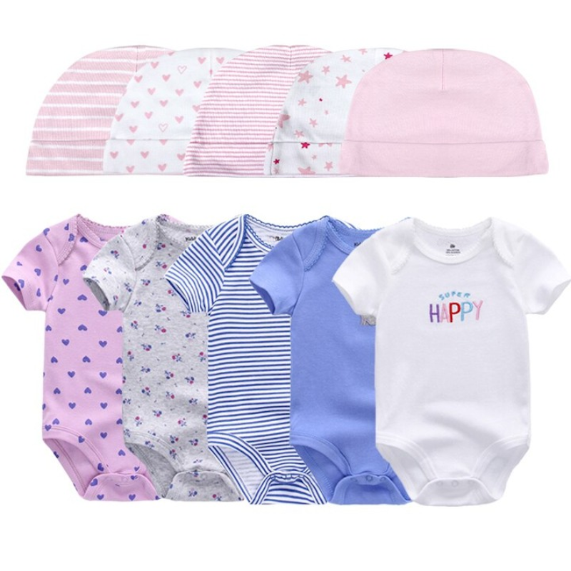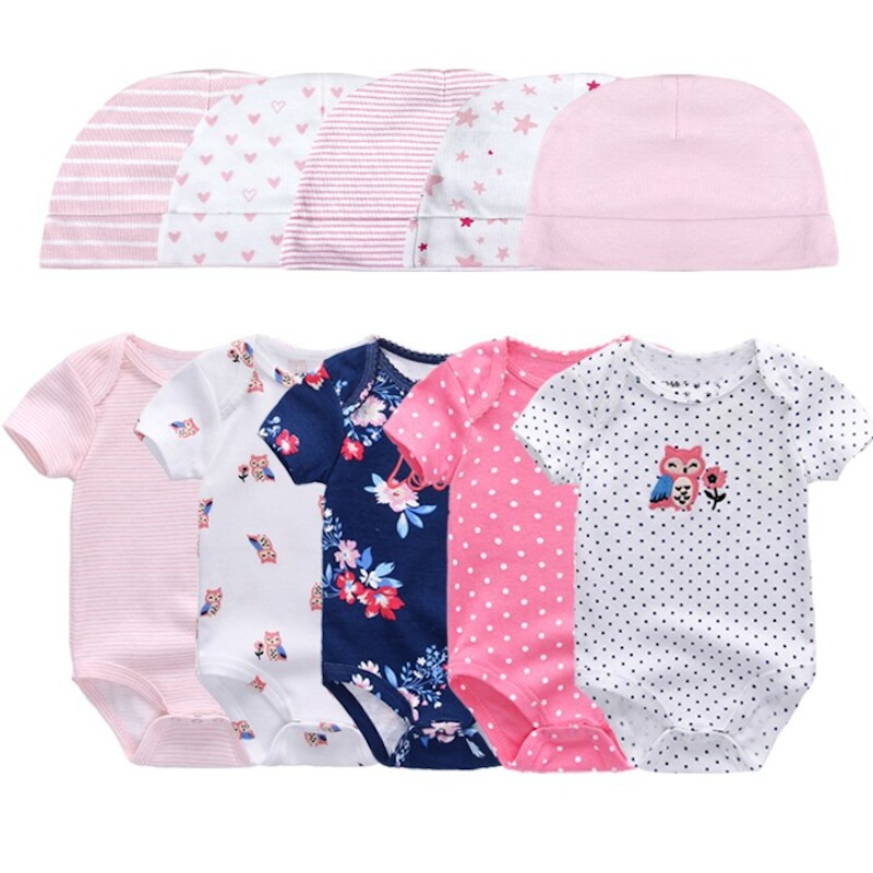 Get your baby this unique and lovely piece designed specifically to give your little one the utmost comfort. This�Printed�Set Of 5 Piece Newborn Baby Bodysuit can make your kid the center of attraction wherever you take him/her to. Plus the pattern makes your kid grow creative capability and enhances their color knowledge.��