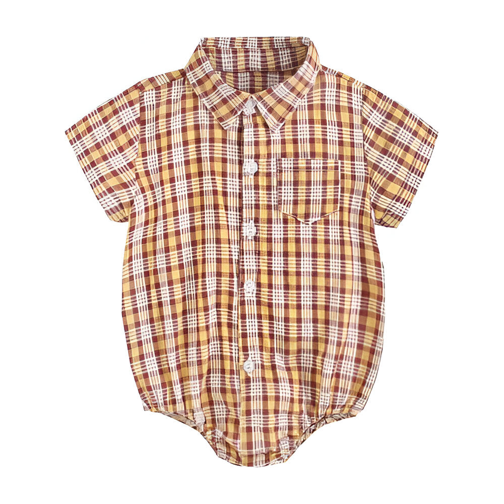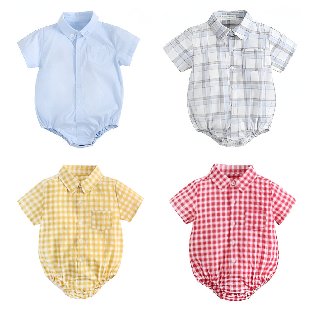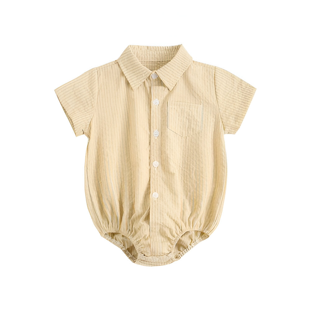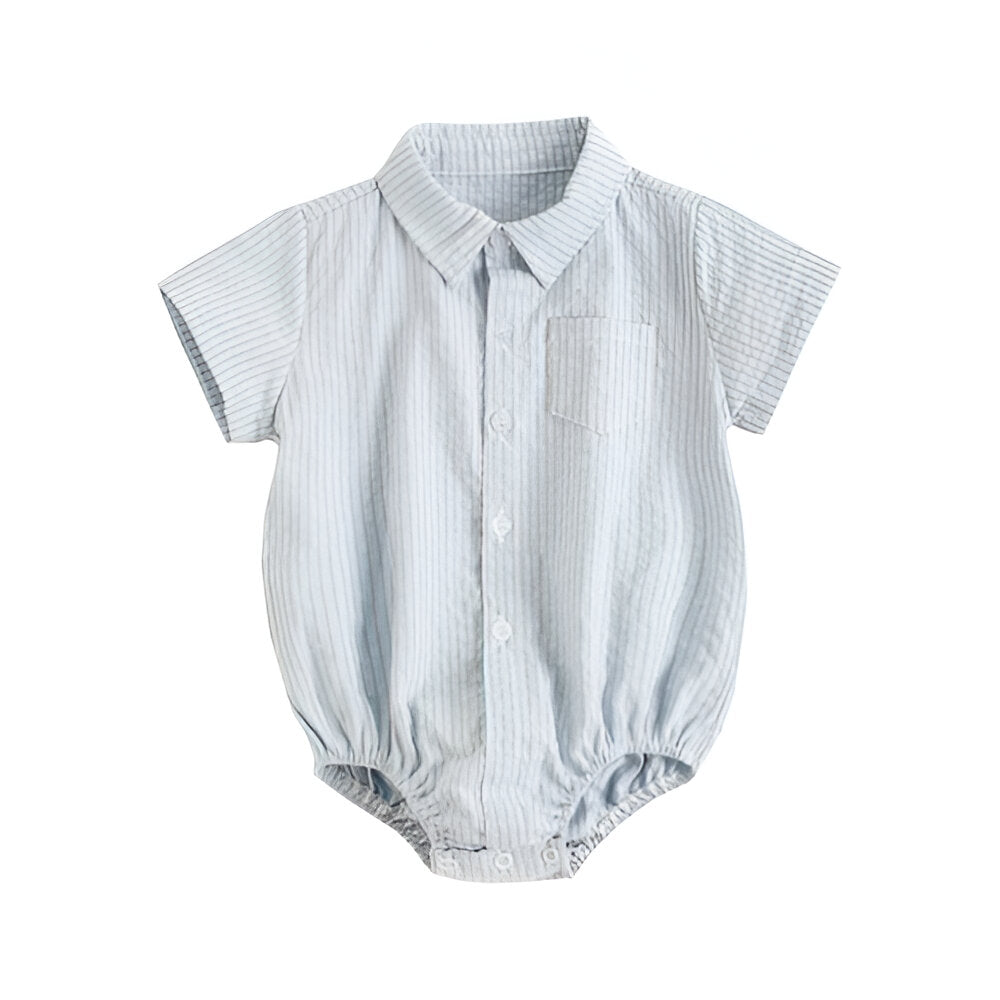 This Short Sleeve Bodysuits combines functionality with a classic look, making it a versatile addition to any infant's wardrobe. Its button-down front and striped pattern give it a smart appearance, while the soft material ensures comfort throughout the day.
