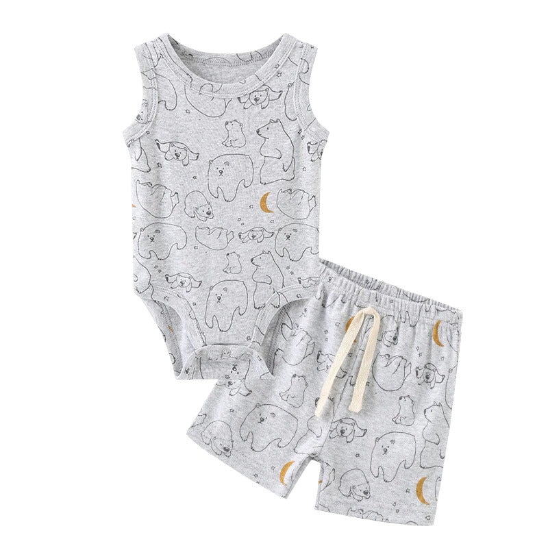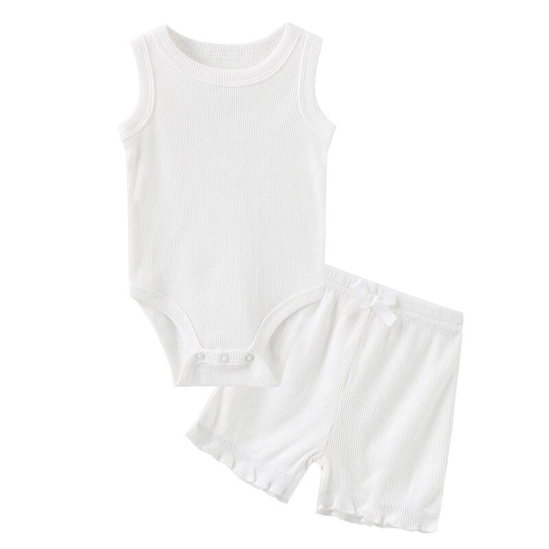 锘�Are you looking for regular-type outfits for your newborns? Here is our astounding 锘�Sleeveless Bodysuit & Elastic Pants Set For Toddlers collection to enhance your kids' style. The fabric is supremely good and fits your child perfectly. The sleeveless cotton vest for this summer brings your baby a feel of enthusiasm.
