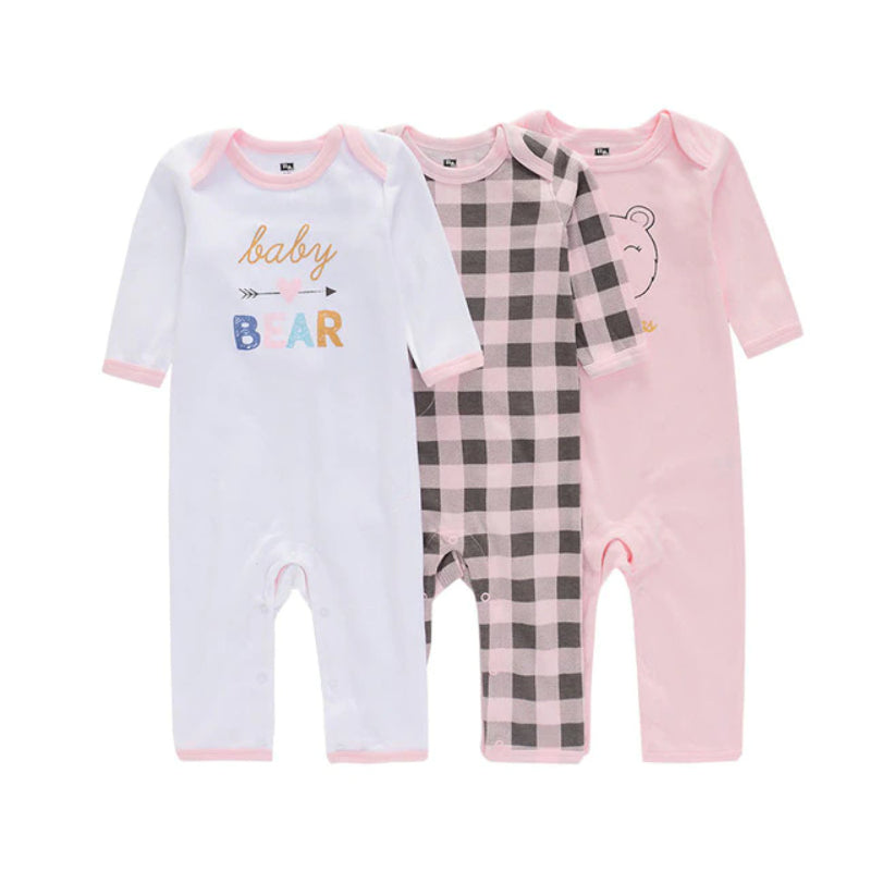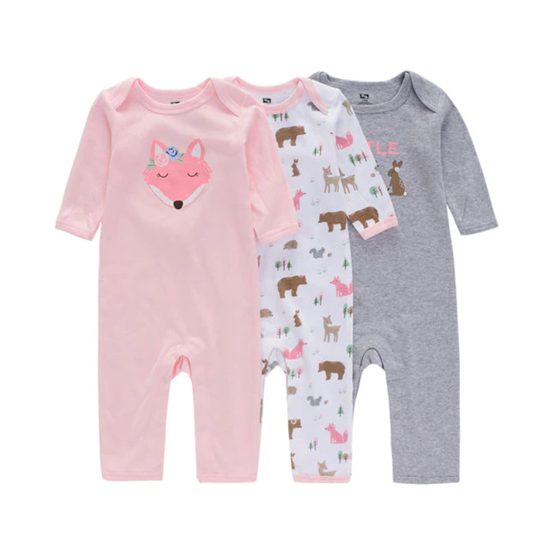 The Unisex 3 Pcs Printed Romper Set is the best fit for the spring season. You can make your babies more comfortable and dress up uniquely with this set. The romper types are the most convenient, and the soft cottony material gives a comfy feel to your child to get rid of any allergies and is available in different sizes.
