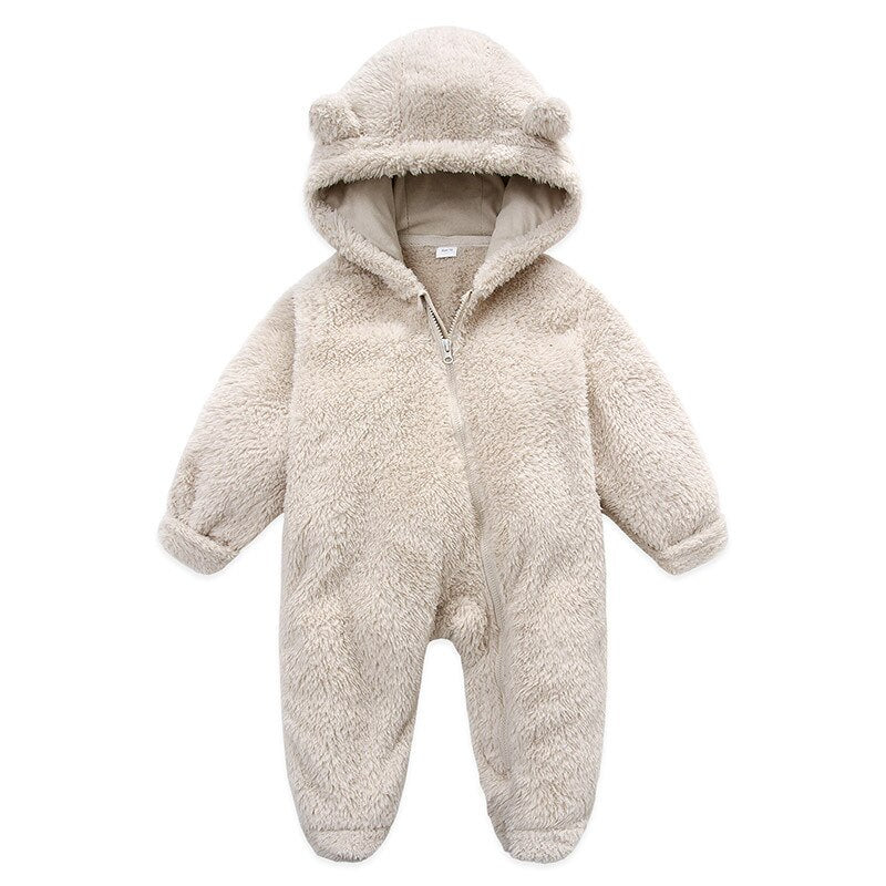 Knitted from natural fabric with jersey lining, these�Unisex New Born Baby Hooded Romper is a lovely layer for a chilly weather adventure.�This romper comes in a neutral color that is perfect for both boys and girls, making it a versatile addition to any baby's wardrobe. The adorable design is sure to make your little one the cutest one in the room.