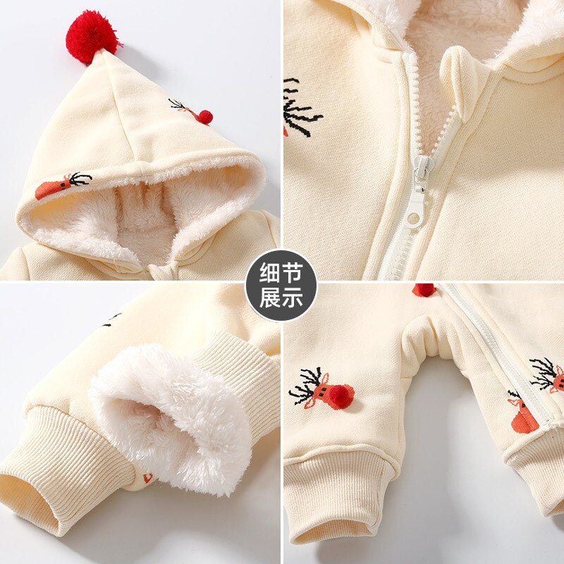 Our�Winter Baby Thicken Christmas Infant Romper will help you show how much you care for your darling, gorgeous baby. This is constructed of premium-quality cotton to give your baby the most comfort and warmth possible. This is made specifically for you; it features a zipper so you can simply put it on and take it off. This comes in a variety of colors to suit your preferences. This is a suitable gift choice as well.