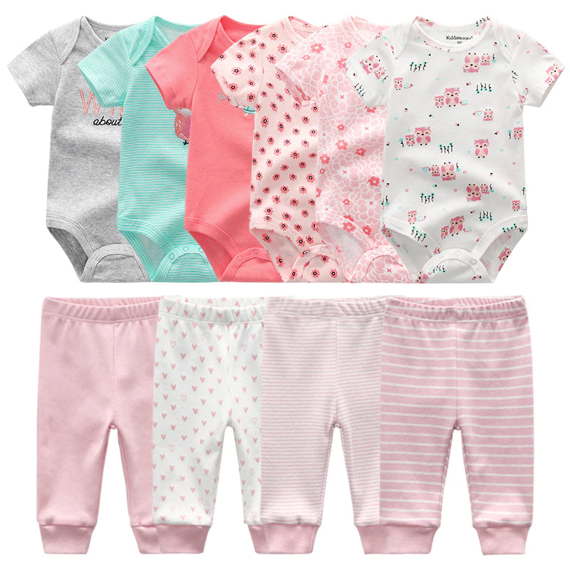 Set Of 6 Pc Bodysuit & 4 Pc Pant For Babies