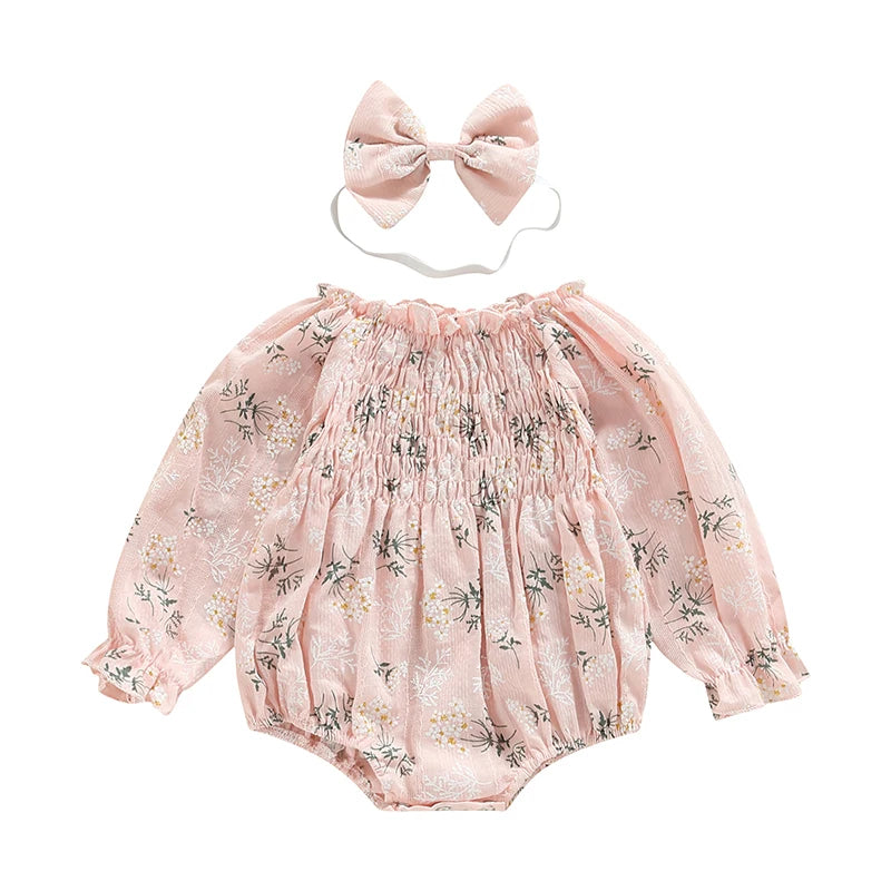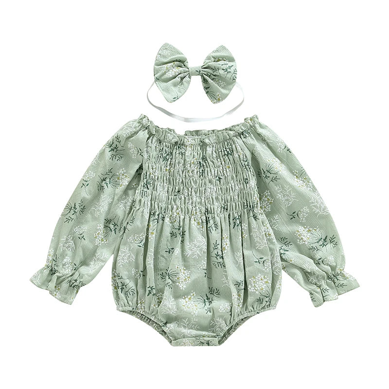 Print Long Sleeve Romper With Headband