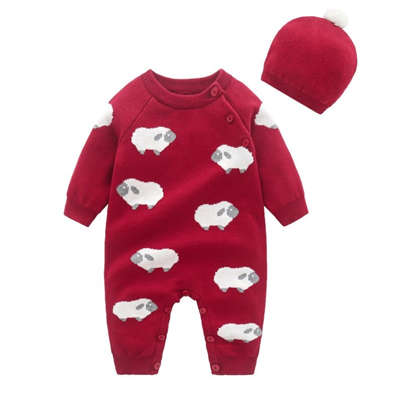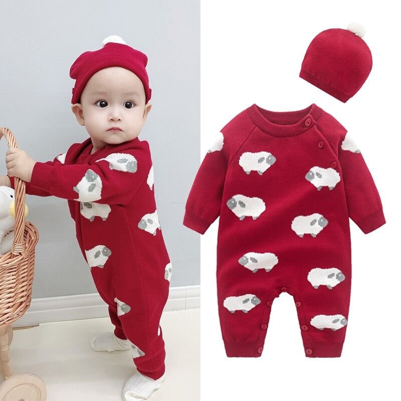 Baby Sheep Neutral Red Romper