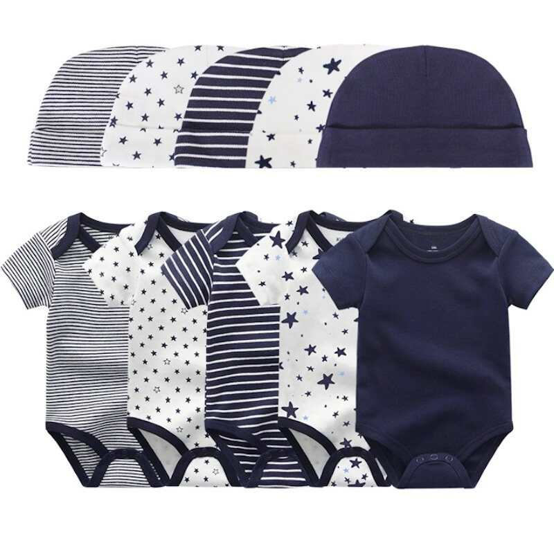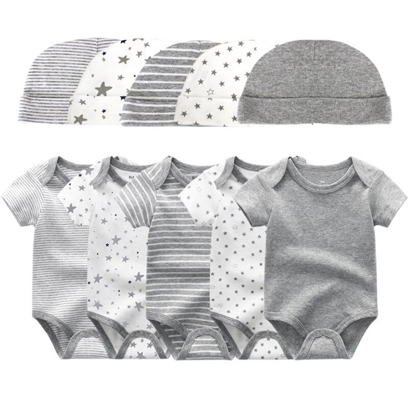 Cotton Bodysuits Set With Pants Hat Gloves & Socks For Newborns