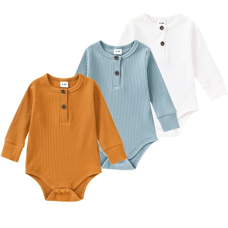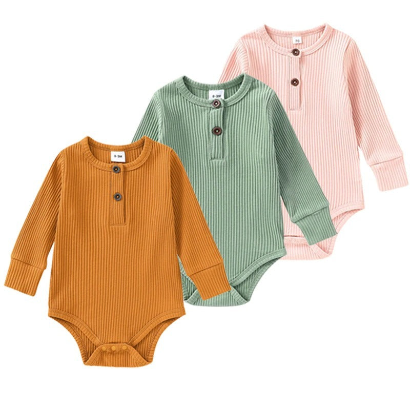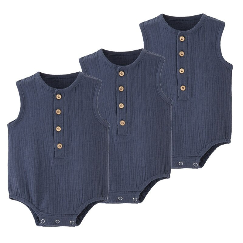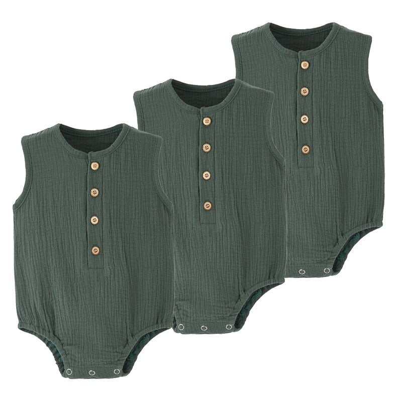 3 Pcs Solid Sleeveless Bodysuit Rompers For Babies