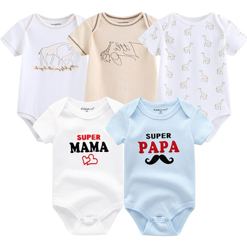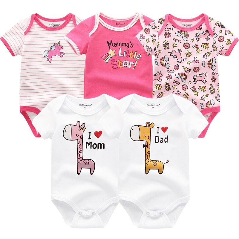 5 Pcs Unisex Baby Cotton Short Sleeved Bodysuits