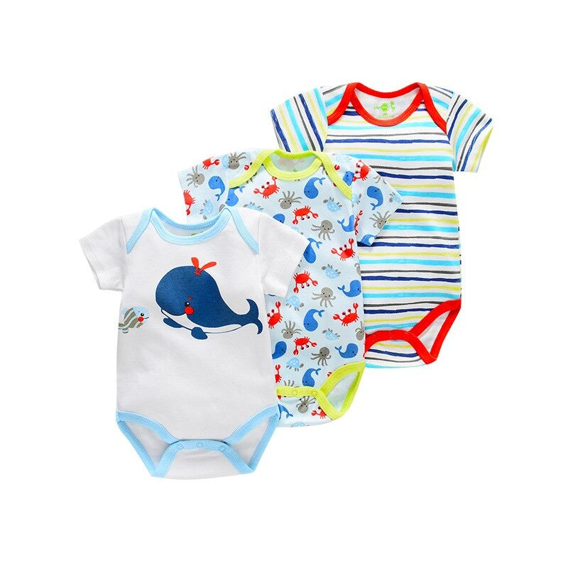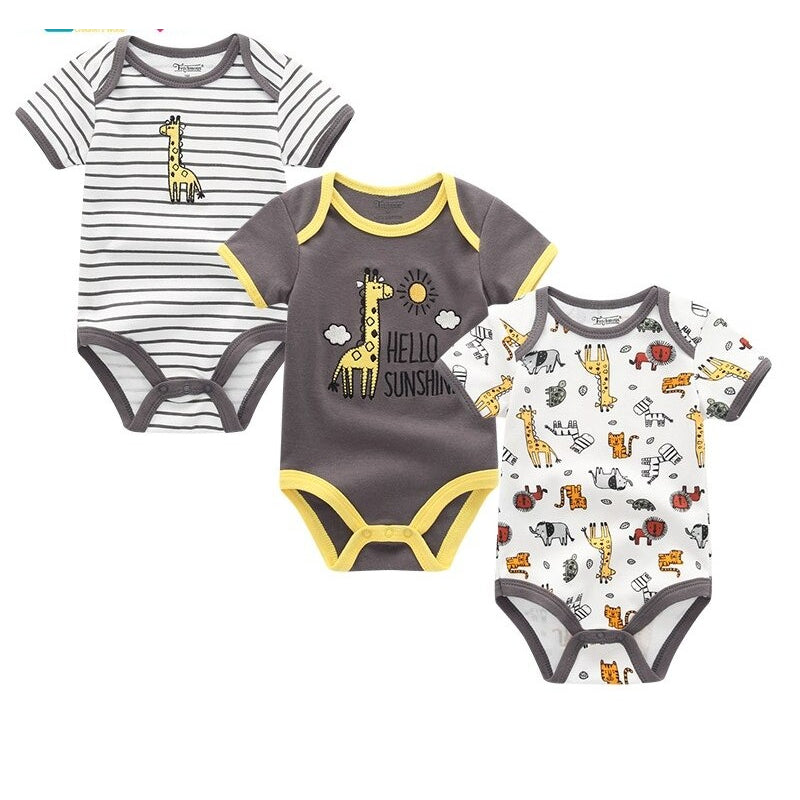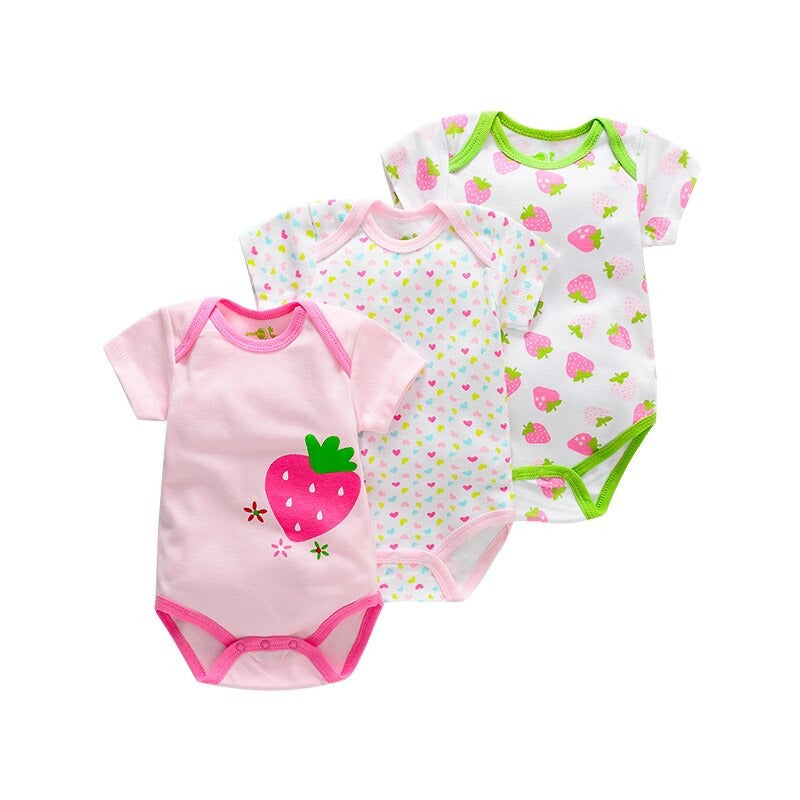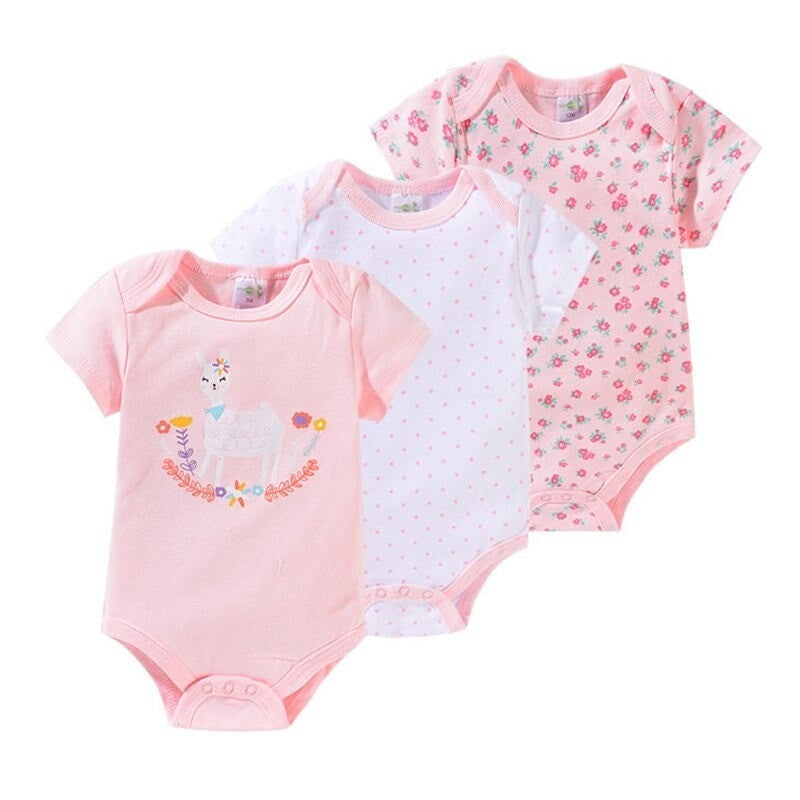 Summer Newborn Baby 3Pcs Printed Bodysuits Set