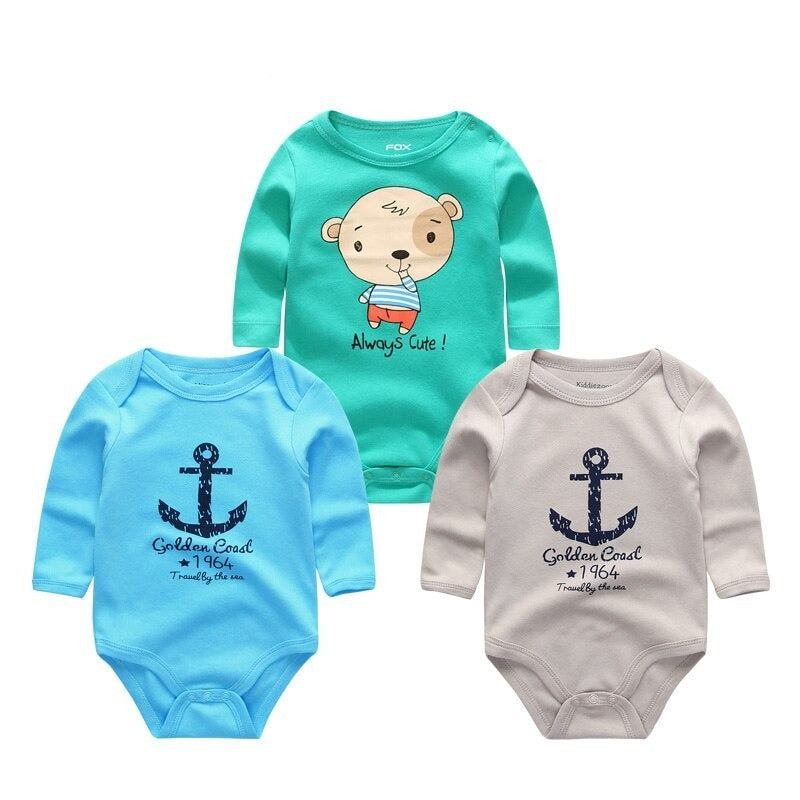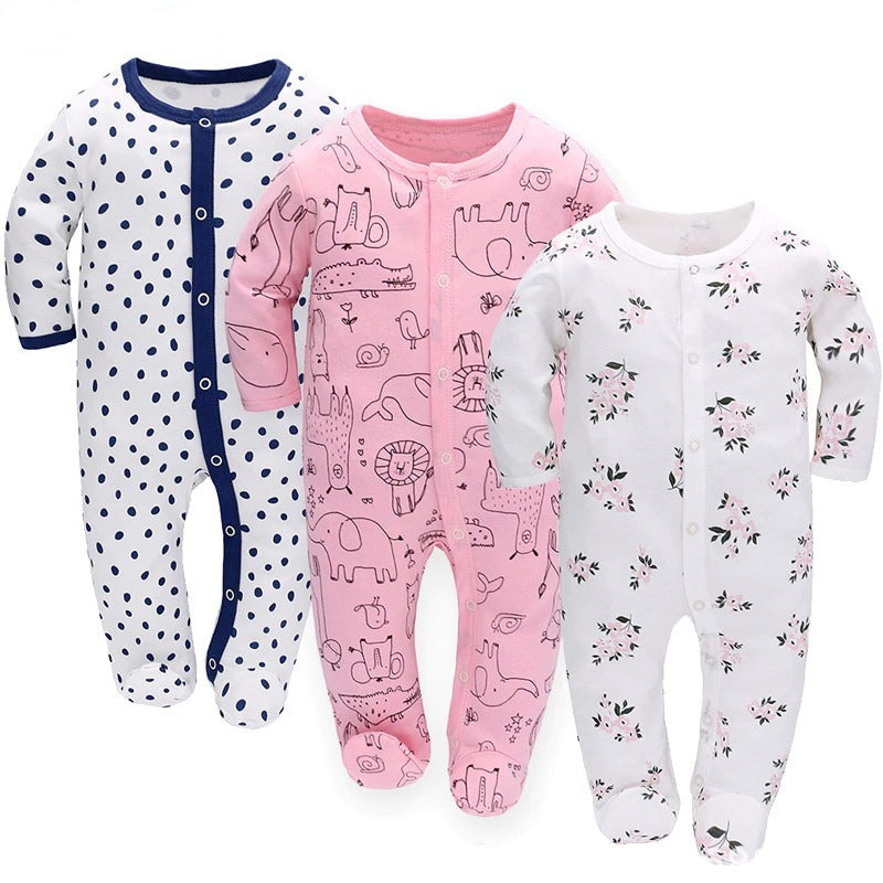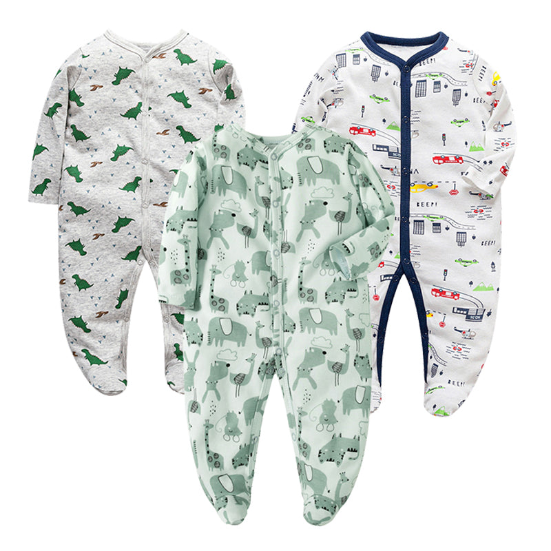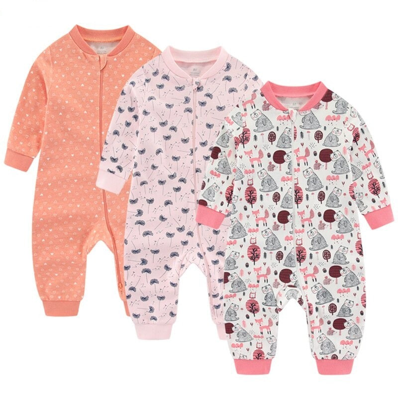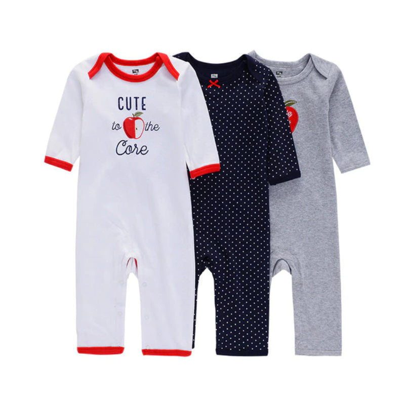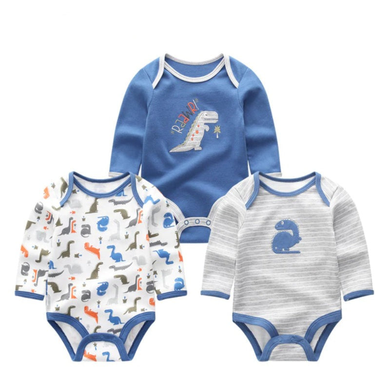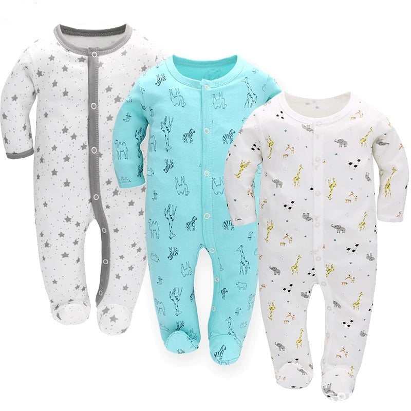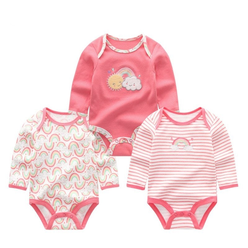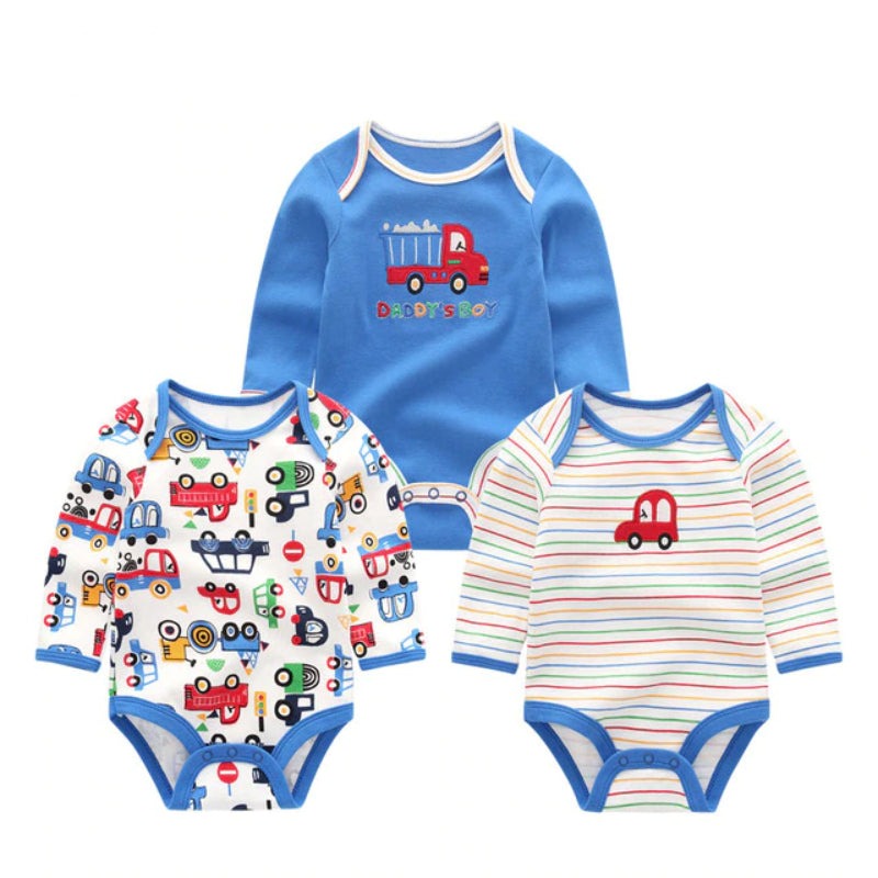 3Pcs Long Sleeve Printed Baby Jumpsuits