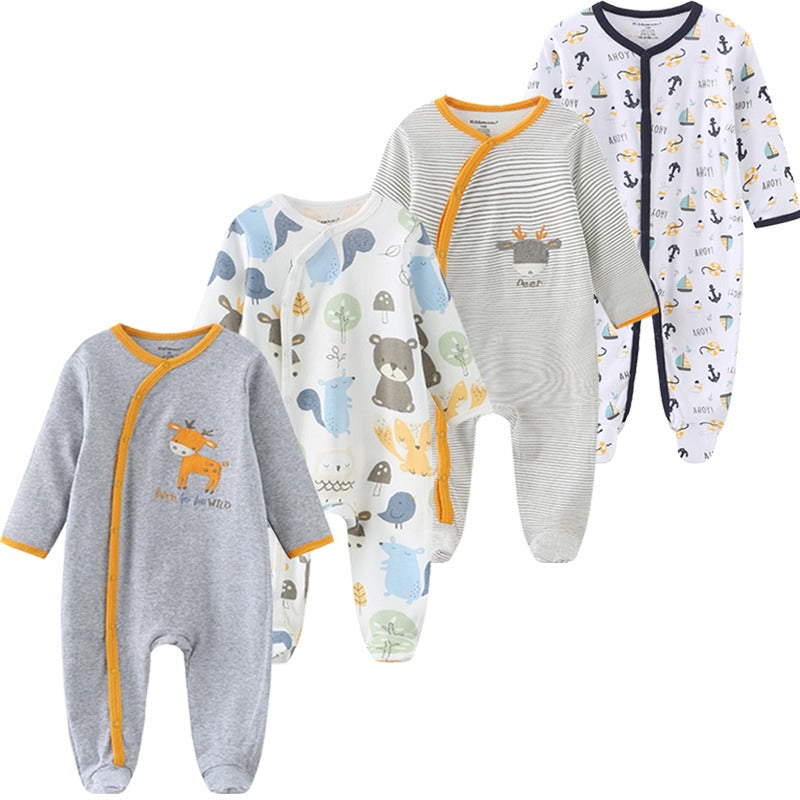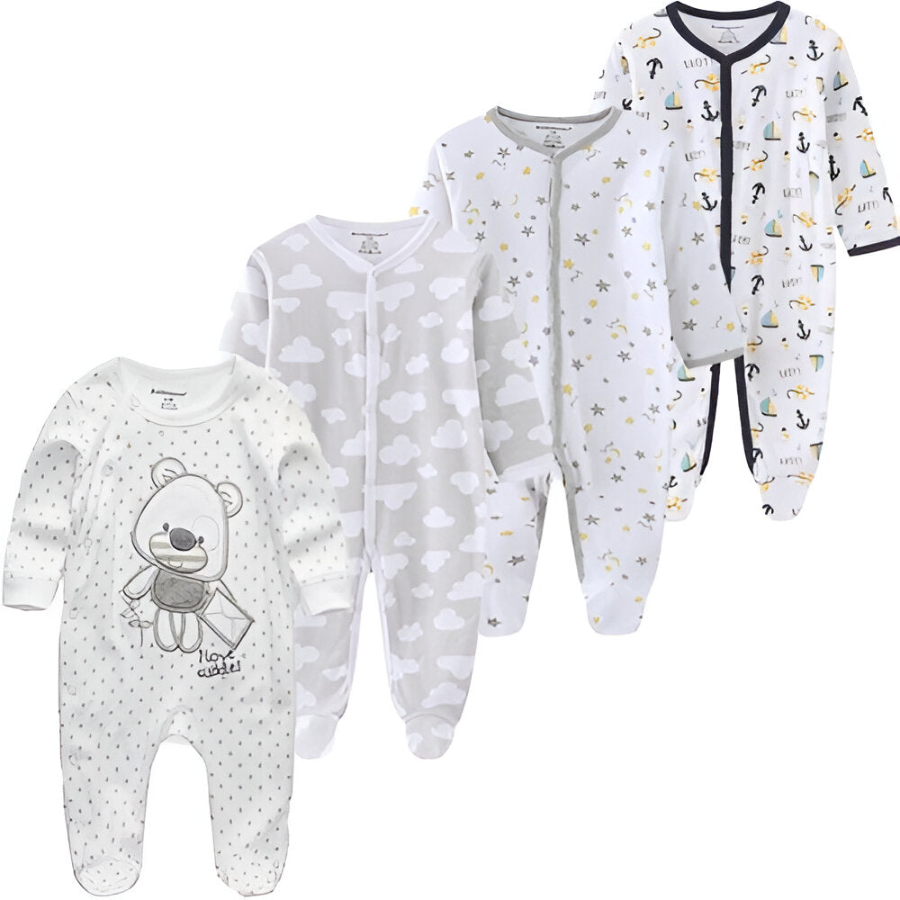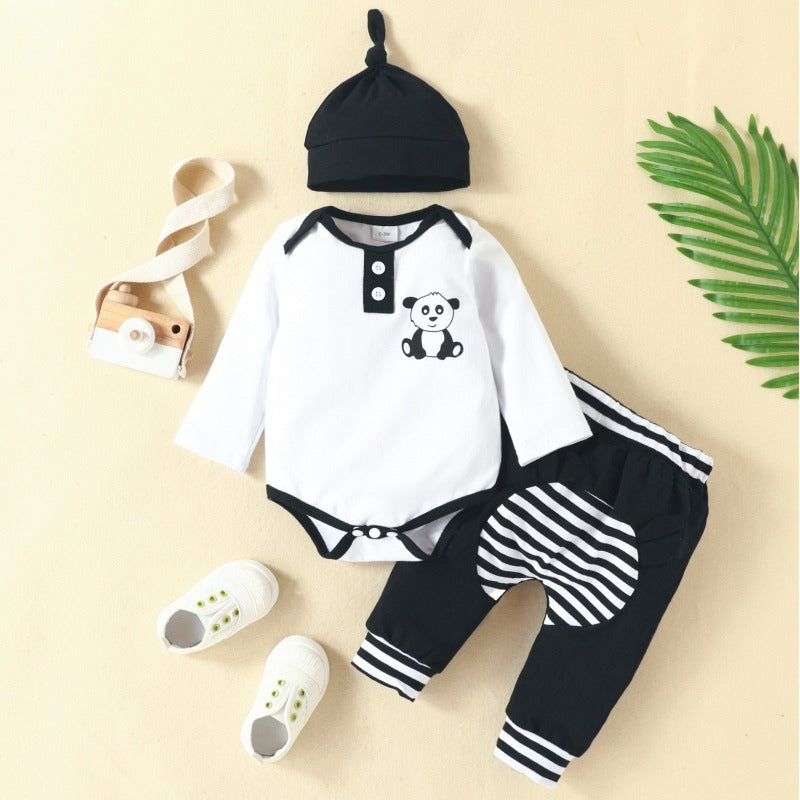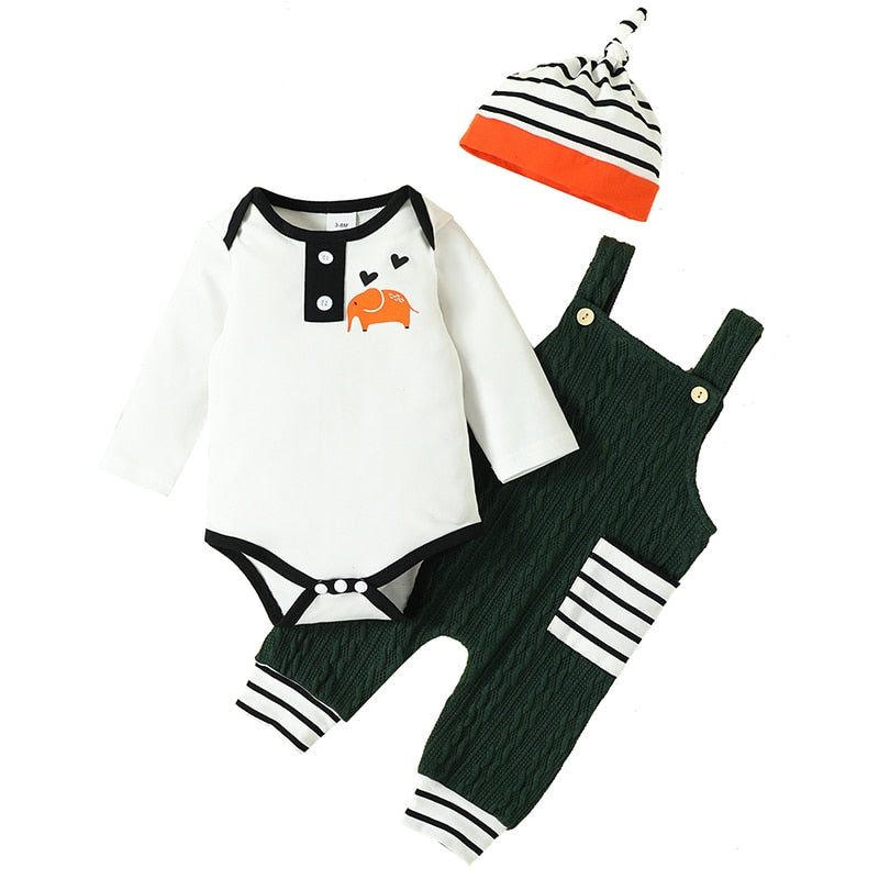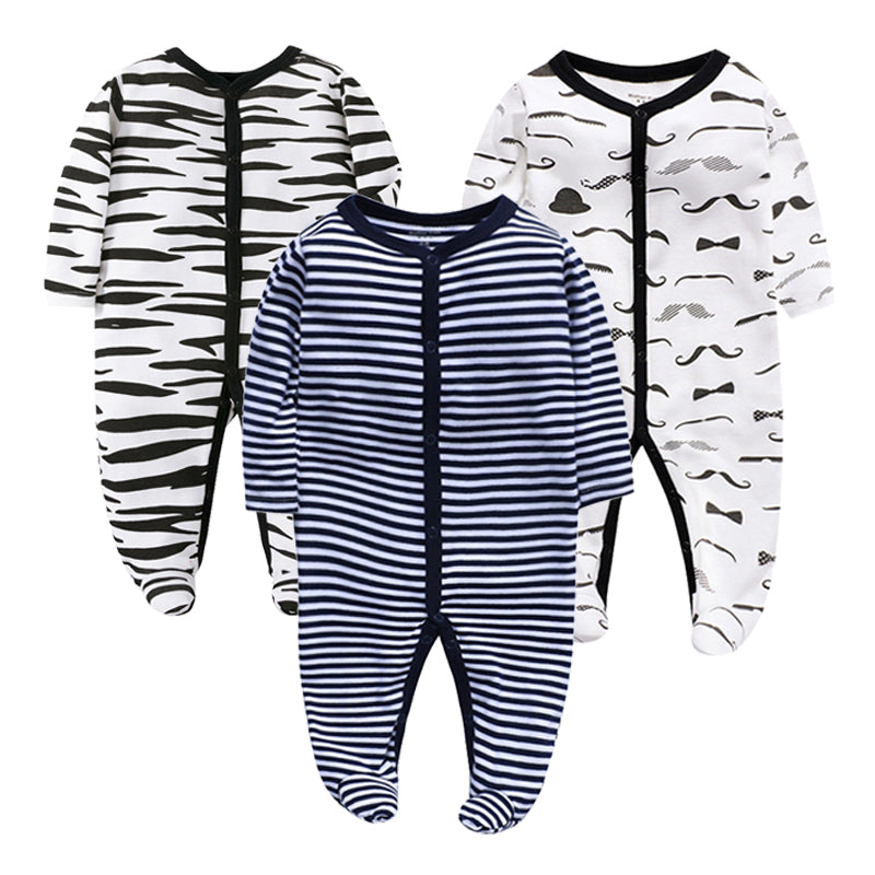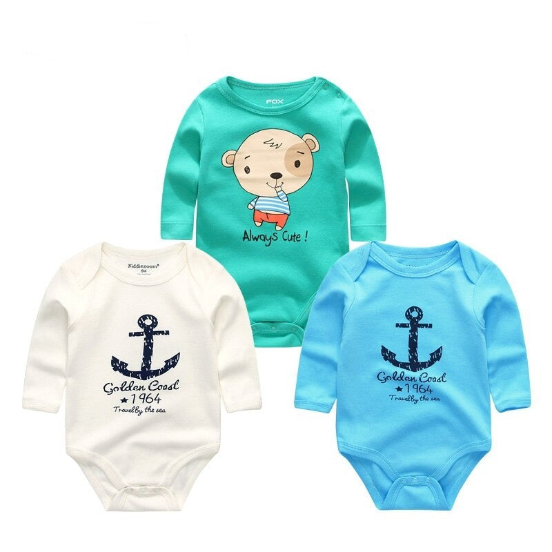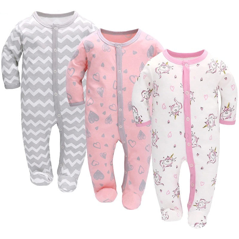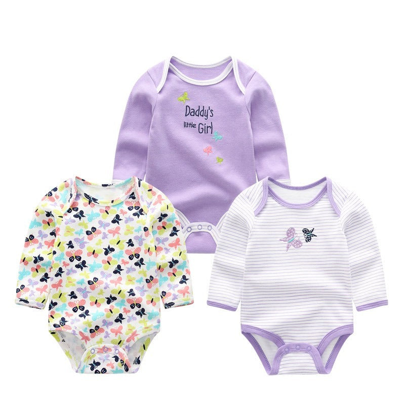 3Pcs Long Sleeve Printed Baby Jumpsuits