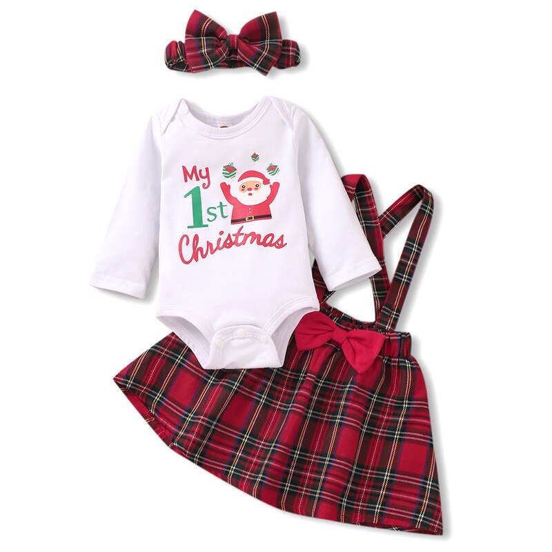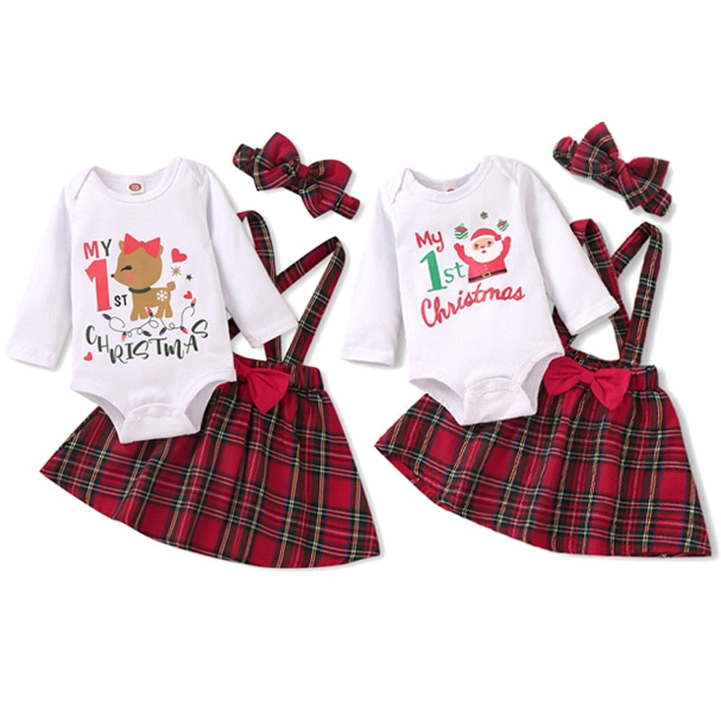3Pcs Long-Sleeves Christmas Outfits Sets For Girls
