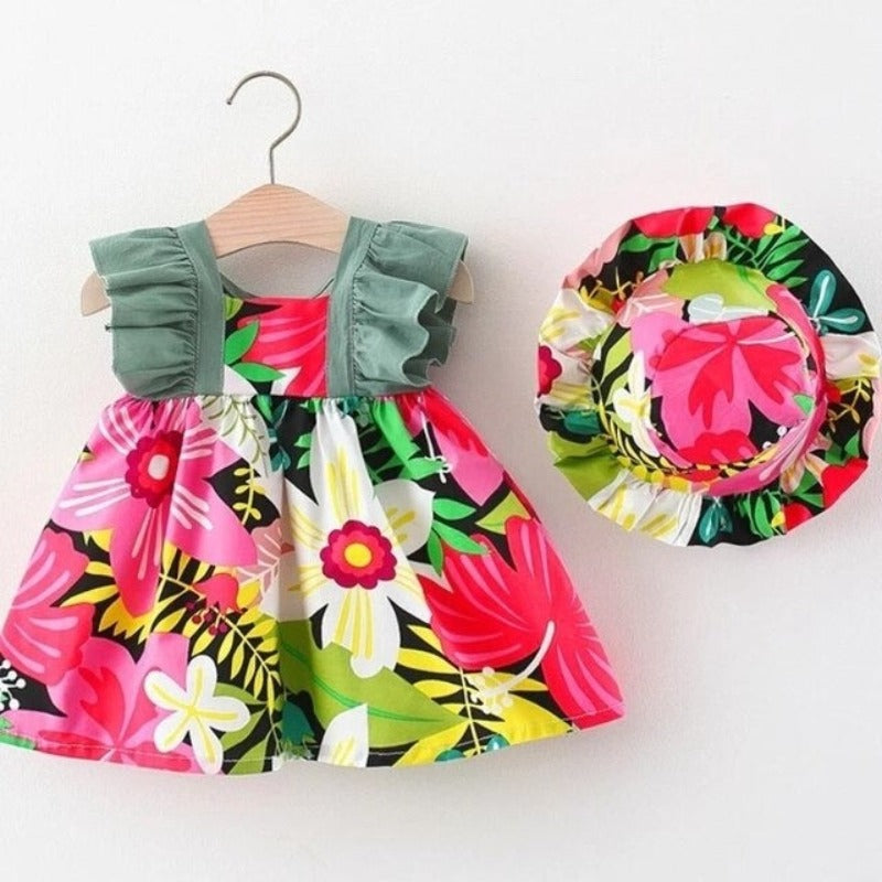 Girl dresses and clothing always keep on changing with time. Fashion is unstoppable but we are here trying to help you out in maintaining pace with the changing fashion trends. Try out your hands on these�Baby Girl Mesh Sleeveless Dresses�that are printed with colorful flowers and have designer sleeves along with a matching cap.�