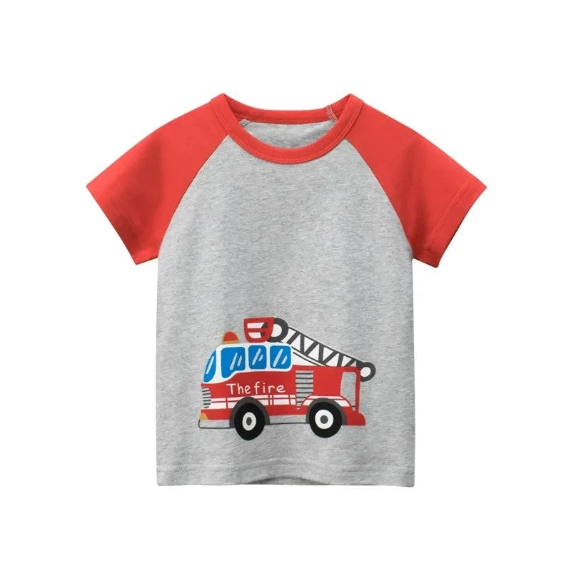 Gear up your little one's wardrobe with the Construction Crew Summer Print T Shirt. This piece combines a fun cartoon print with comfortable wearability, making it an ideal choice for daily adventures. Crafted for children who adore playful designs, this t-shirt blends fashion with a hint of whimsy.