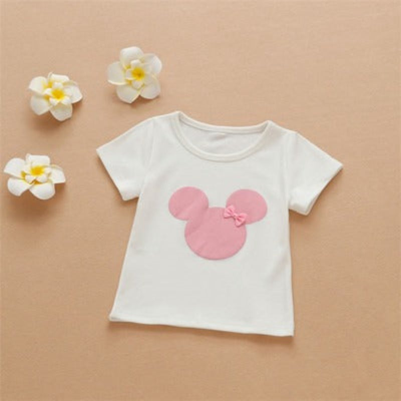 Kids surely require a lot of clothing as they live stress-free and carelessly while they keep on spoiling their clothes with food, mud, drink spilling, and what not! Make a new addition to their regular wear wardrobe with these Girls Bottom Wear Tops. The round-neck half-sleeve top comes with a minimal mickey face print and is great for daily usage or casual outings.