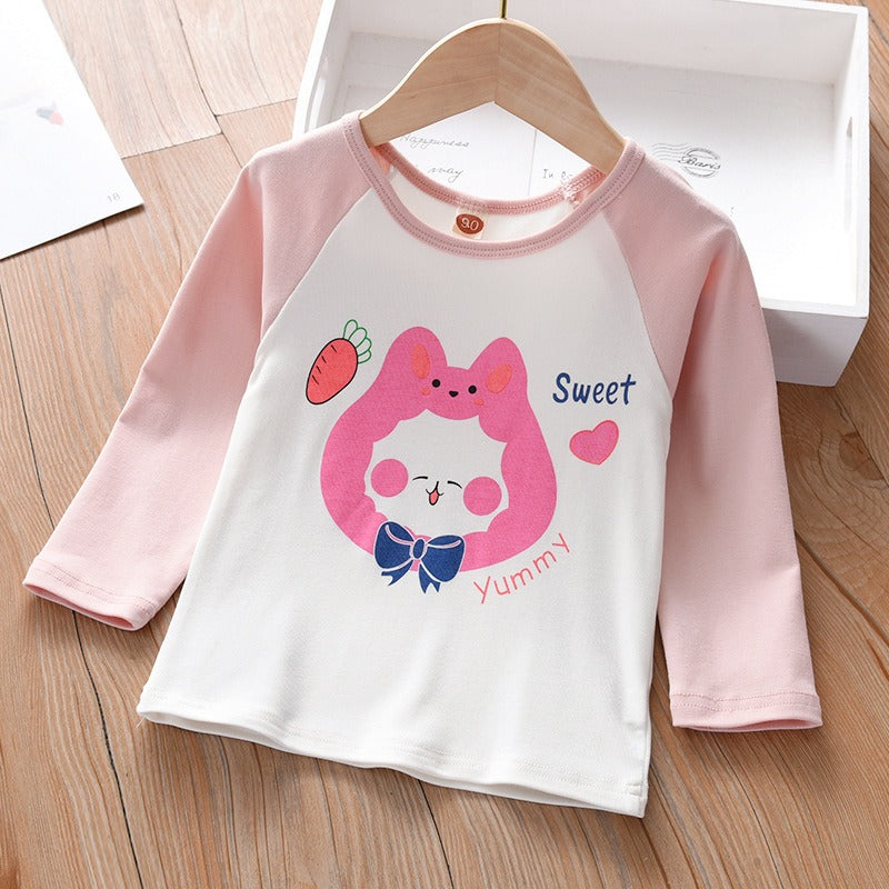 Keep away the sun tanning, extreme heat, or complexities of changing weather away from your kids and shop for Girls Long Sleeve Spring T-Shirt. These t-shirts are great for slightly windy or cold days and come with cute rabbit or animal prints. Make a perfect closet and let your kids never run out of choices with such classic t-shirts.